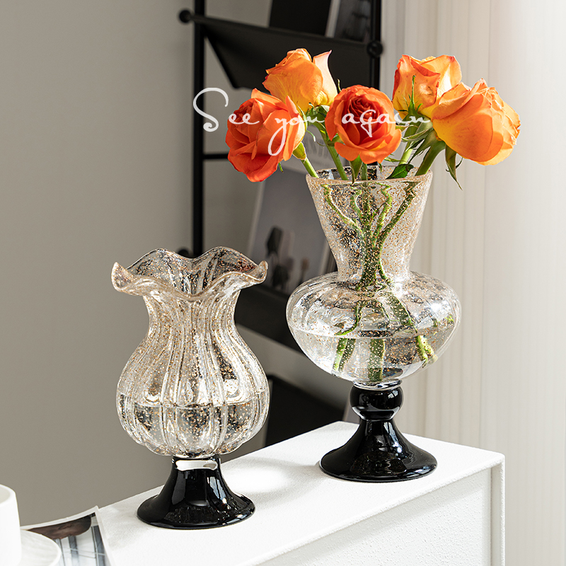 ヨーロピアンスタイルのガラス花瓶、高級感のあるフラワーアレンジメント、クリエイティブなリビング・ダイニングルームの装飾、高級感のある花瓶飾り