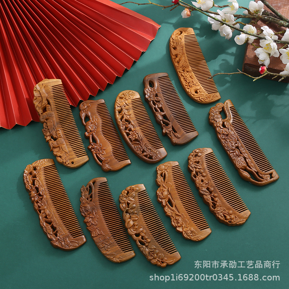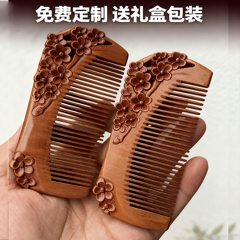 ソースメーカーの古典的な彫刻されたピーチウッドの木製櫛、ガールフレンドへのギフトとして手彫りの木製櫛、彫刻されたサンダルウッドの櫛