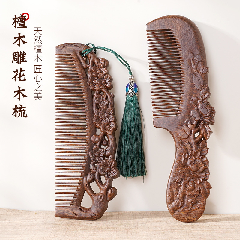 緑檀木櫛の彫刻花は友達の女性に専用の長髪プレゼントを送ります。