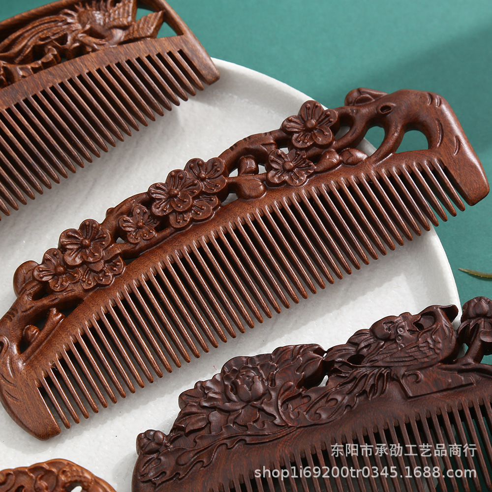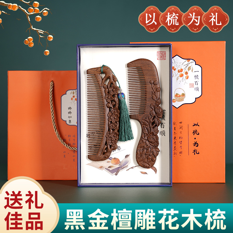 黑金檀木梳双面雕花复古长发梳美发养发便携木梳子送亲友