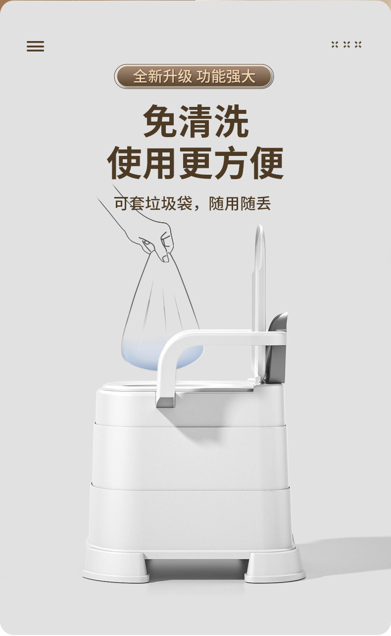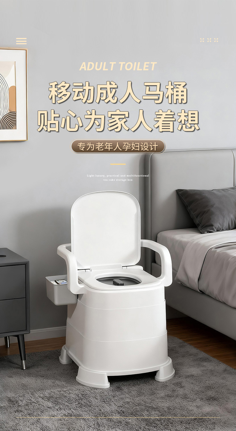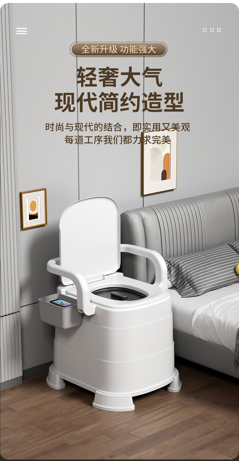 老人可移动马桶孕妇床边座便器成人防臭坐便椅室内痰盂便携坐便盆