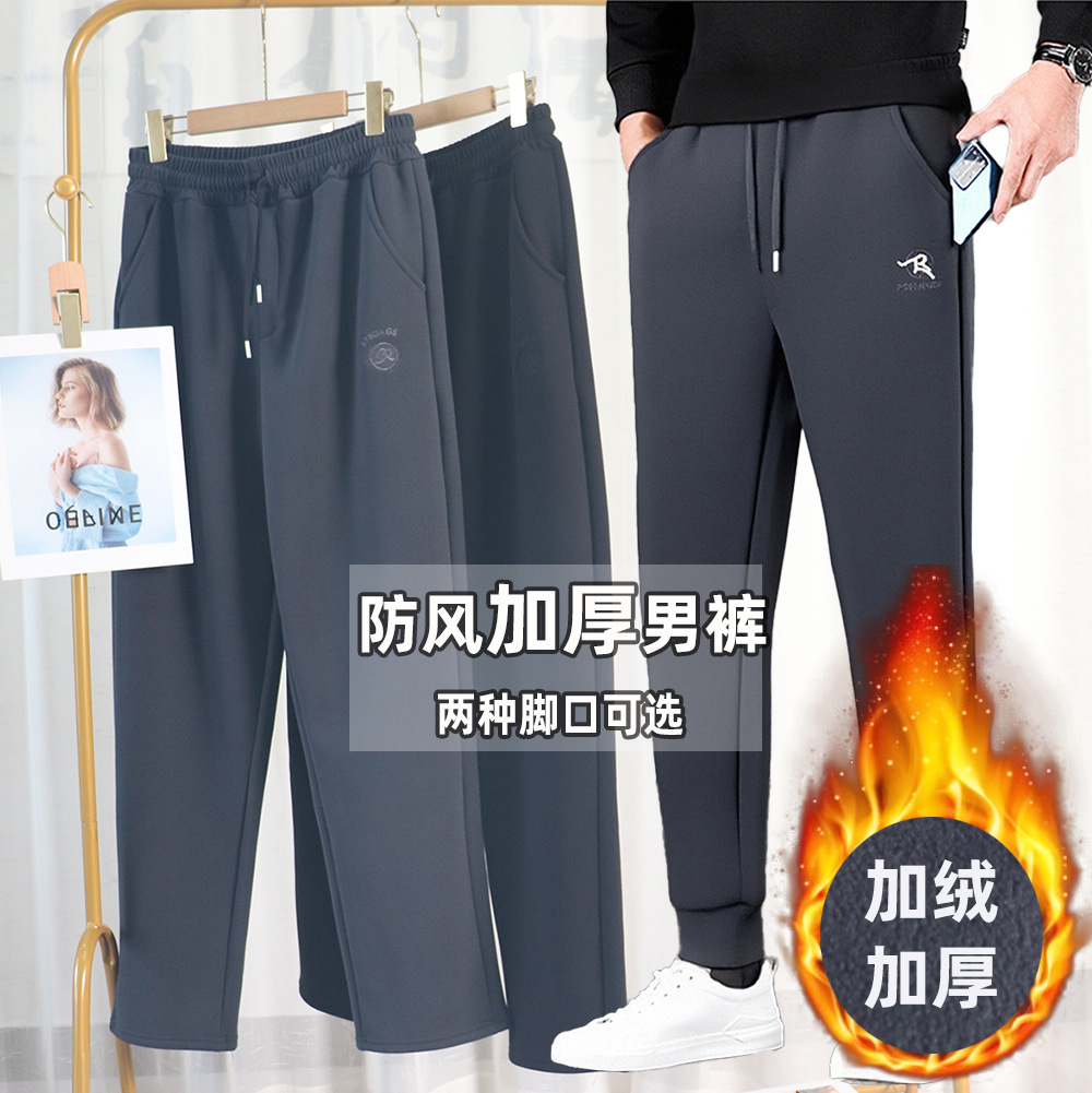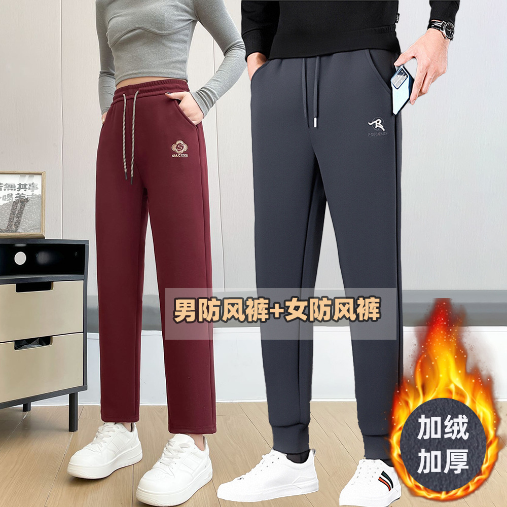 加绒加厚防风裤男女卫裤宽松舒适中老年男士运动裤宽松直筒男裤