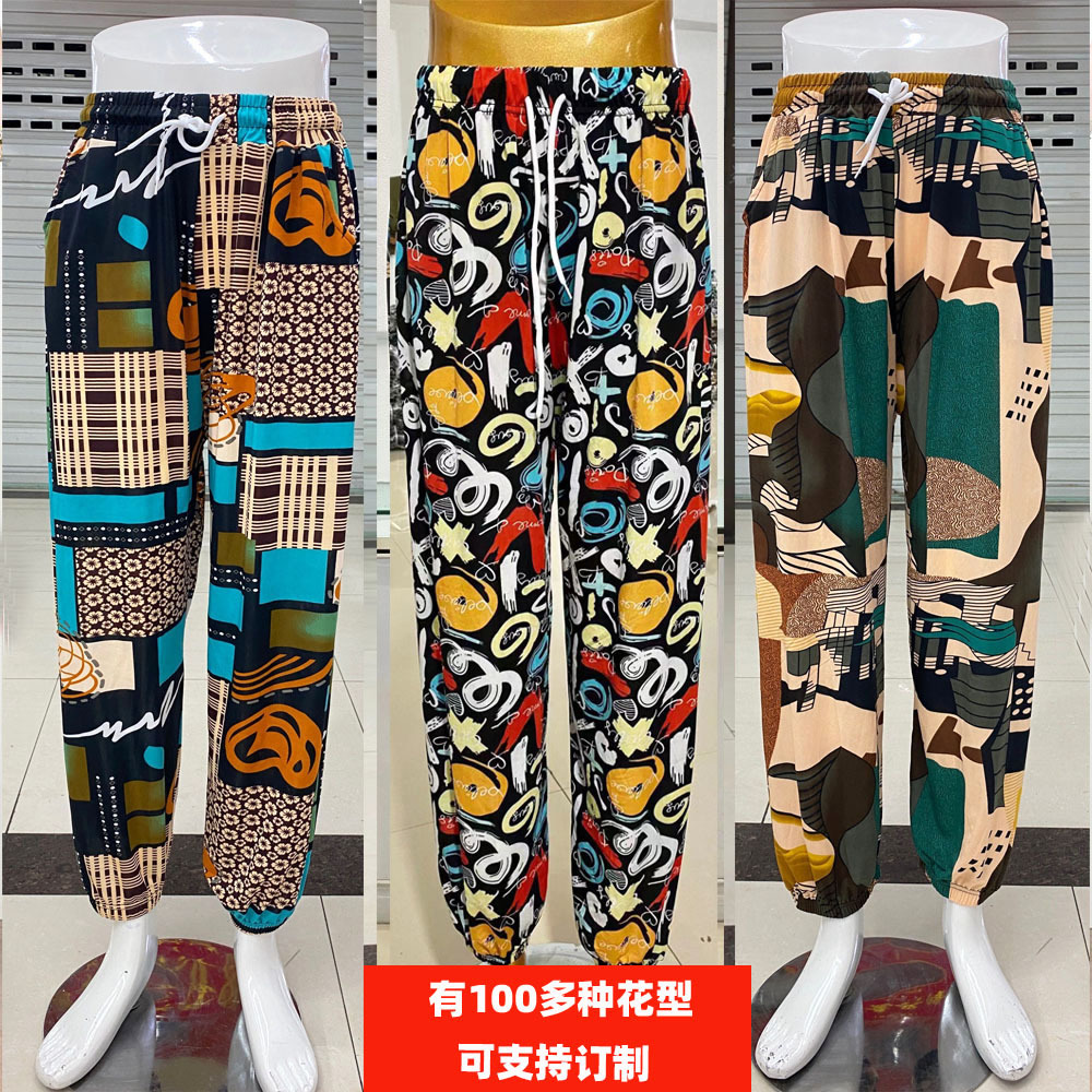 メーカー卸売り雪氷糸薄手灯籠ズボン女性束口夏プリント涼しいズボン氷糸カジュアル防蚊ズボン