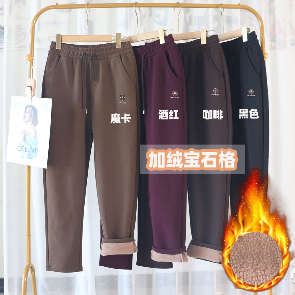 中年妈妈仿羊绒裤子加绒加厚直筒裤中老年女裤外穿休闲裤宽松显瘦