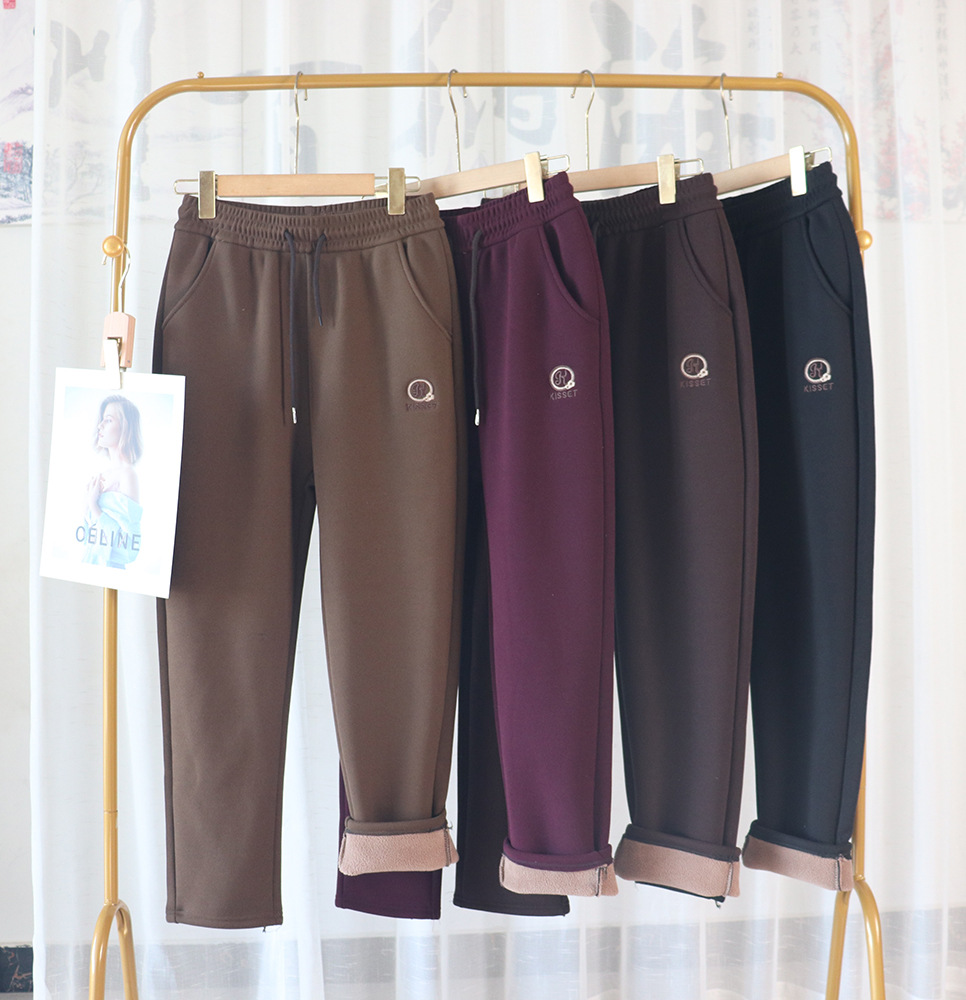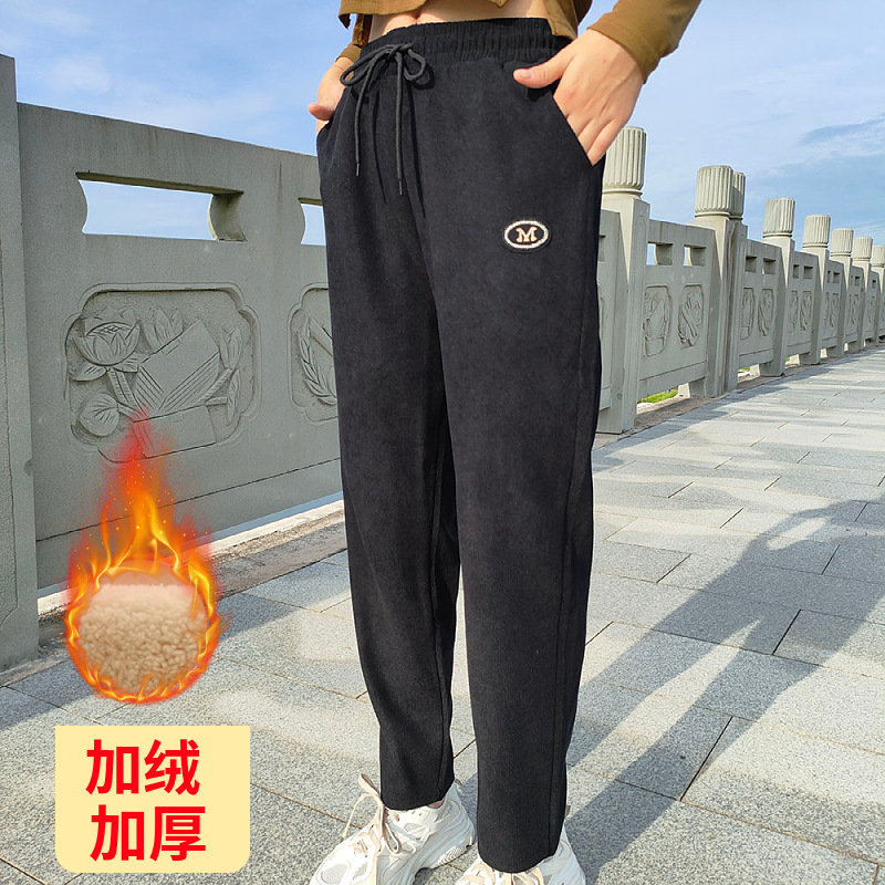 加绒加厚秋冬金貂米粒女裤中老年保暖高腰休闲直筒裤女长裤妈妈裤