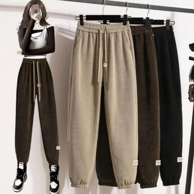 コーデュロイ大きいサイズパンツ レディース 秋冬用 アウター スポーツカジュアルパンツ ゆったり レギンス風パンツ カジュアル万能