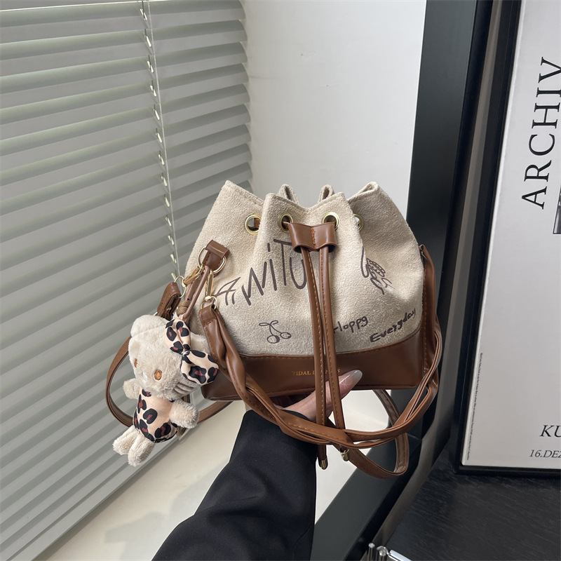 女性バッグ2025新型斜めショルダーバッグバケツバッグ感百合レトロショルダーバッグ今年流行レトロ通勤バッグ女性