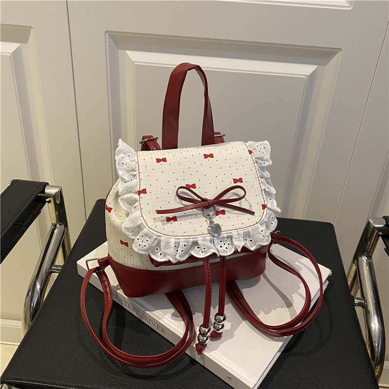 可爱波点花边双肩包包女2025新款潮流时尚蝴蝶结水桶包百搭小背包