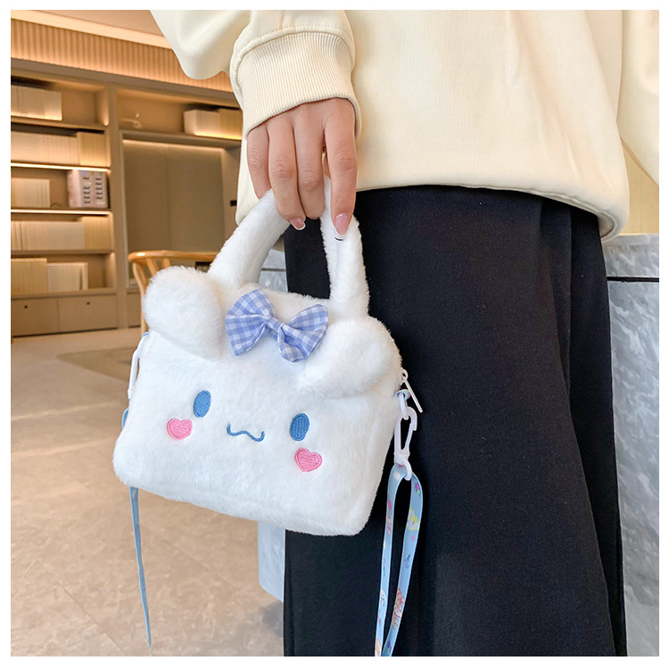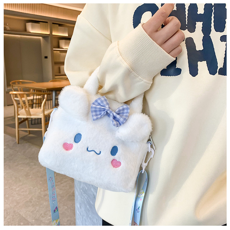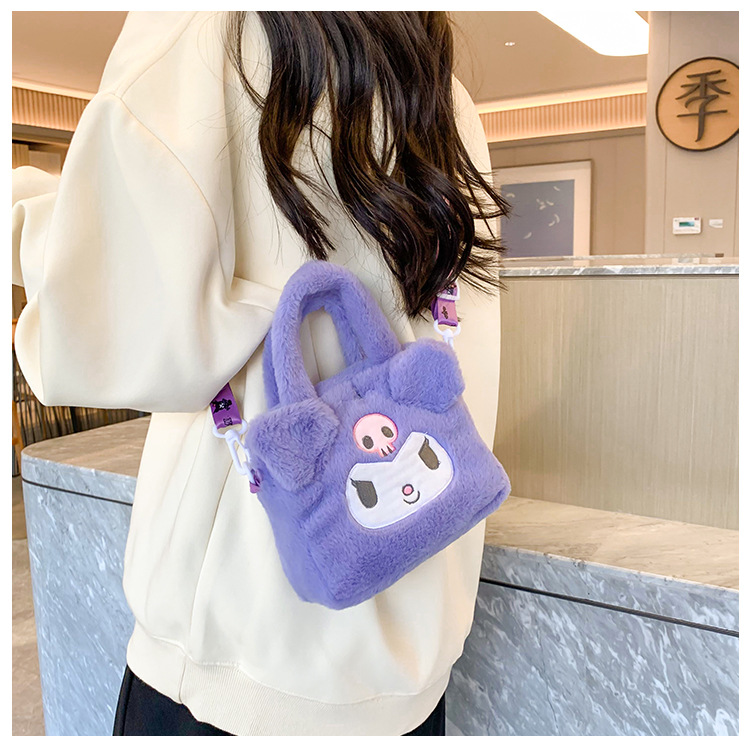 新款毛绒斜跨手提包可爱少女卡通便携收纳包单肩包时尚冬款包批发
