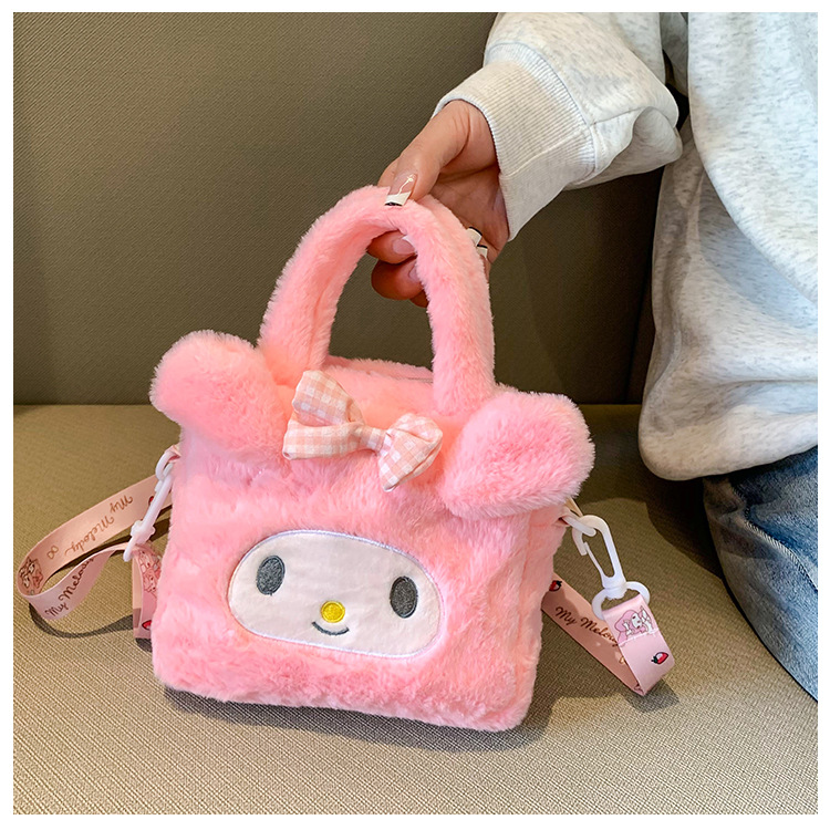 日系可爱斜挎包美乐蒂毛绒包草莓熊手提包玉桂狗玩偶抓机娃娃公仔