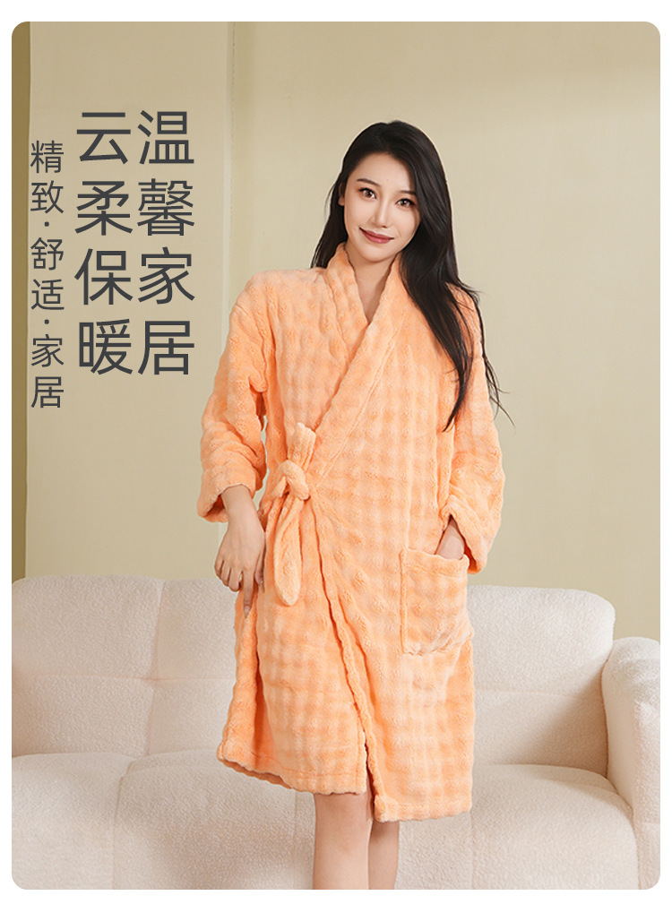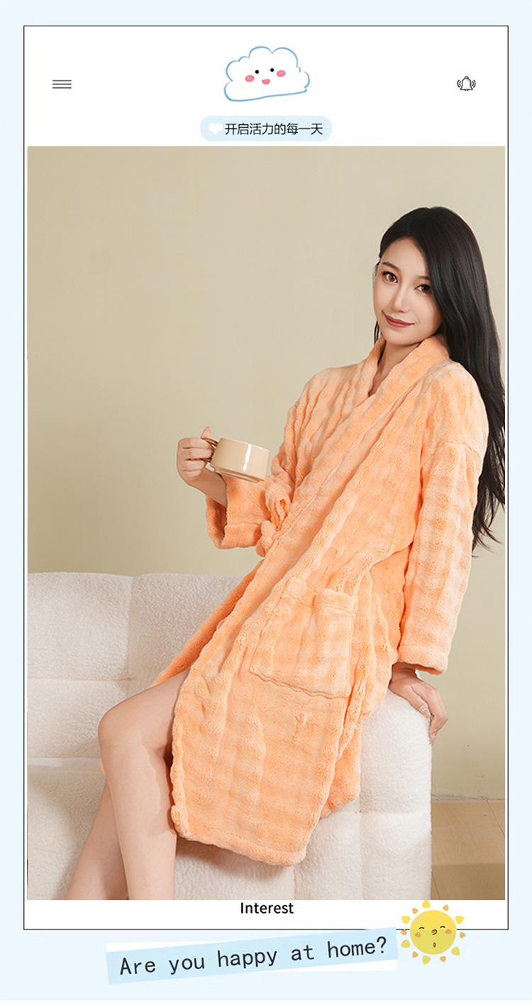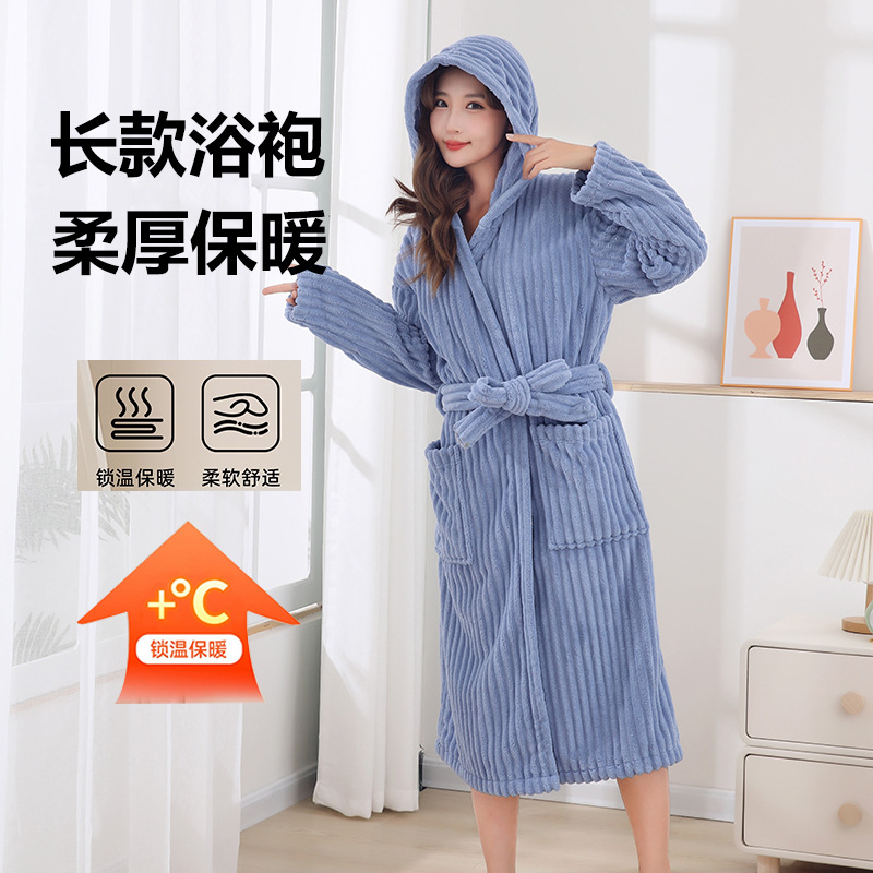 新款秋冬睡袍家居服浴袍长款加厚条纹珊瑚绒吸水睡衣透气宽松睡衣