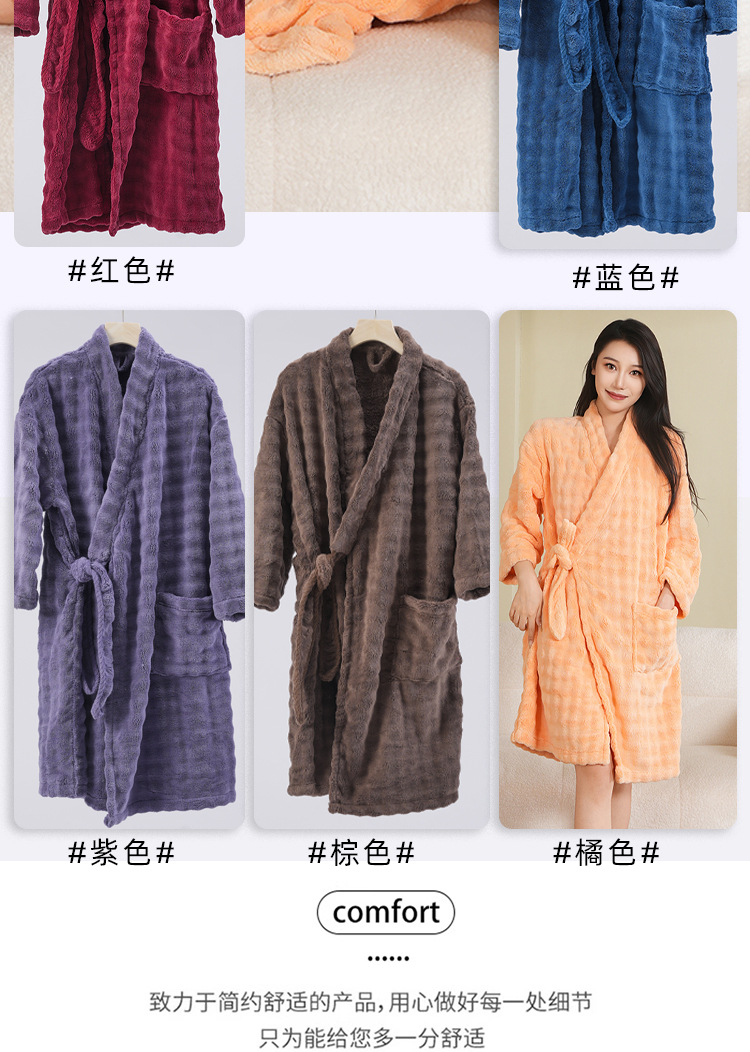 颜色 橘色【泡泡绒立领】浴袍,红色【泡泡绒立领】浴袍,蓝色【泡泡绒立领】浴袍,紫色【泡泡绒立领】浴袍,棕色【泡泡绒立领】浴袍