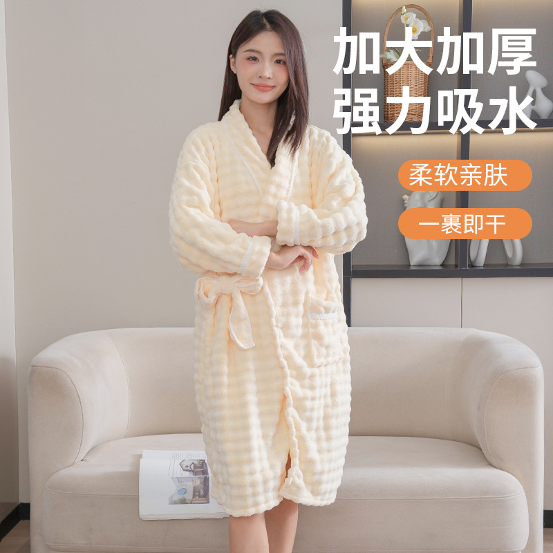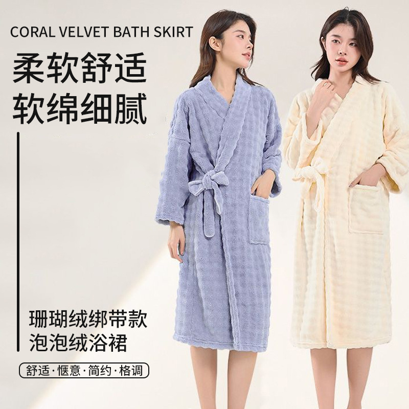 泡泡绒浴袍吸水速干家居服秋冬季家用情侣舒适亲肤大浴巾珊瑚绒