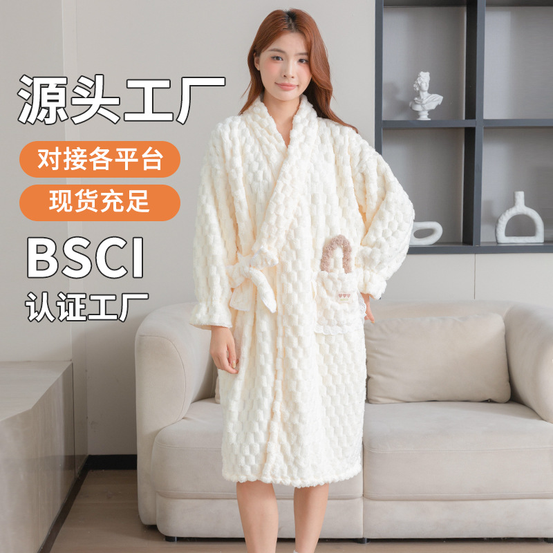 浴袍式浴巾女吸水速干浴衣秋冬季酒店睡袍毛巾男珊瑚绒批发