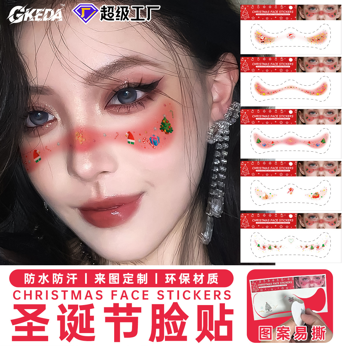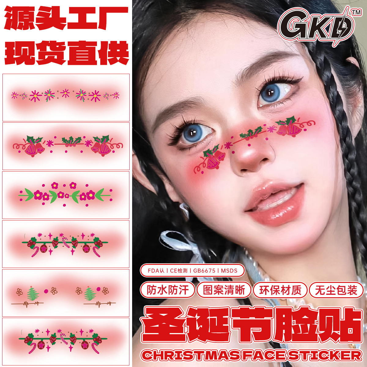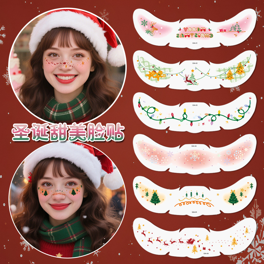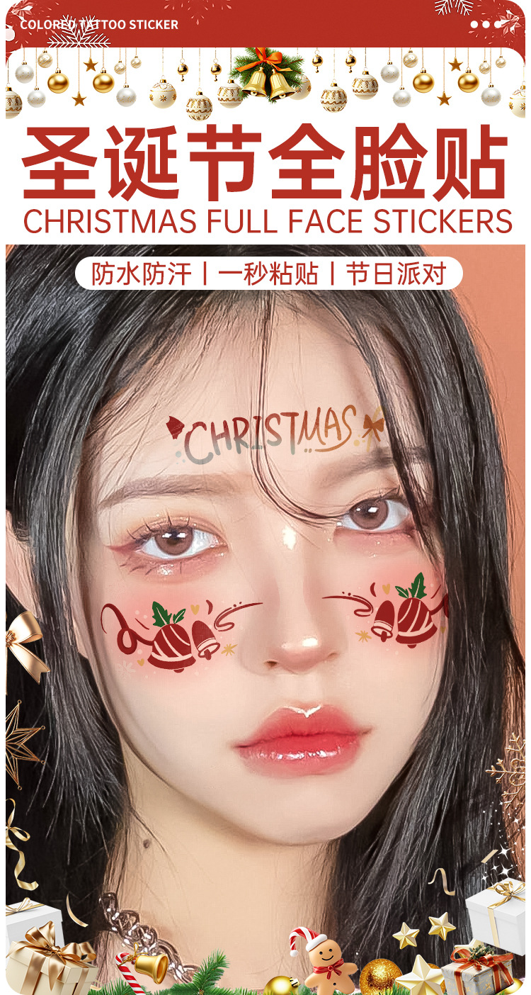 跨境新品圣诞节妆容眼角脸贴高级感可爱卡通面部装饰临时纹身贴纸