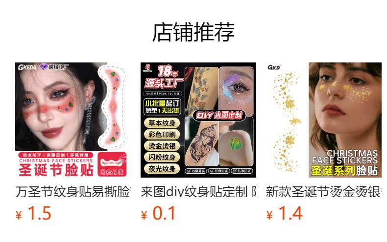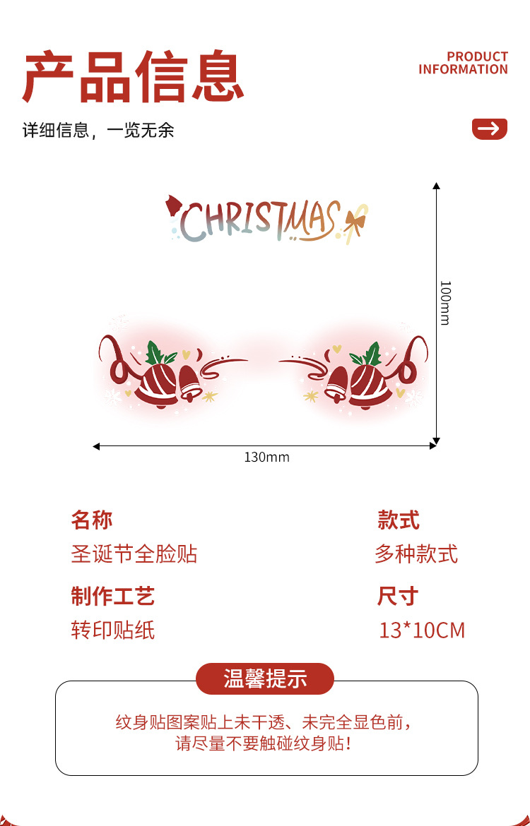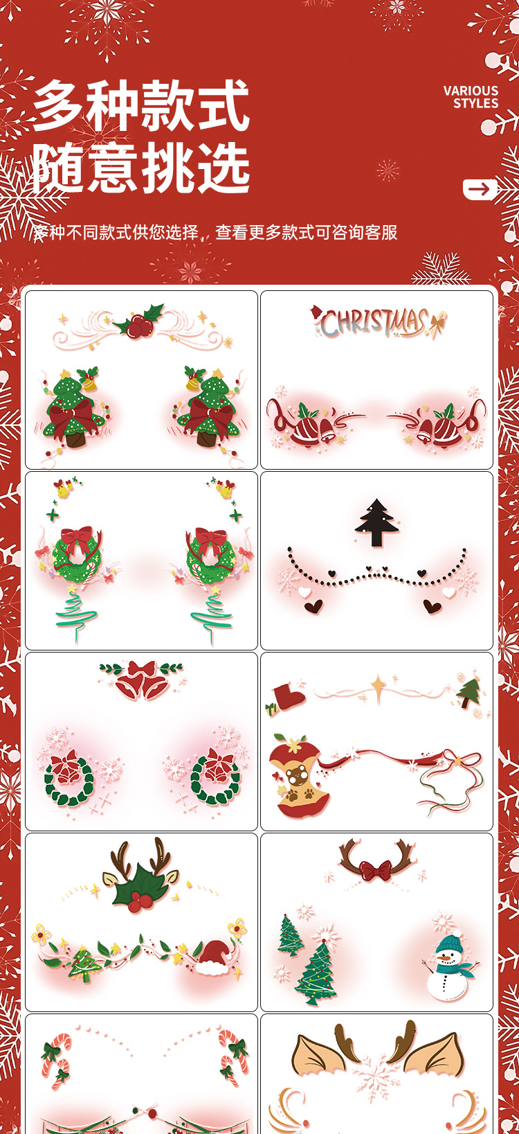 圣诞节纹身贴易撕脸部妆容贴派对临时纹身脸贴圣诞树麋鹿雪花贴纸