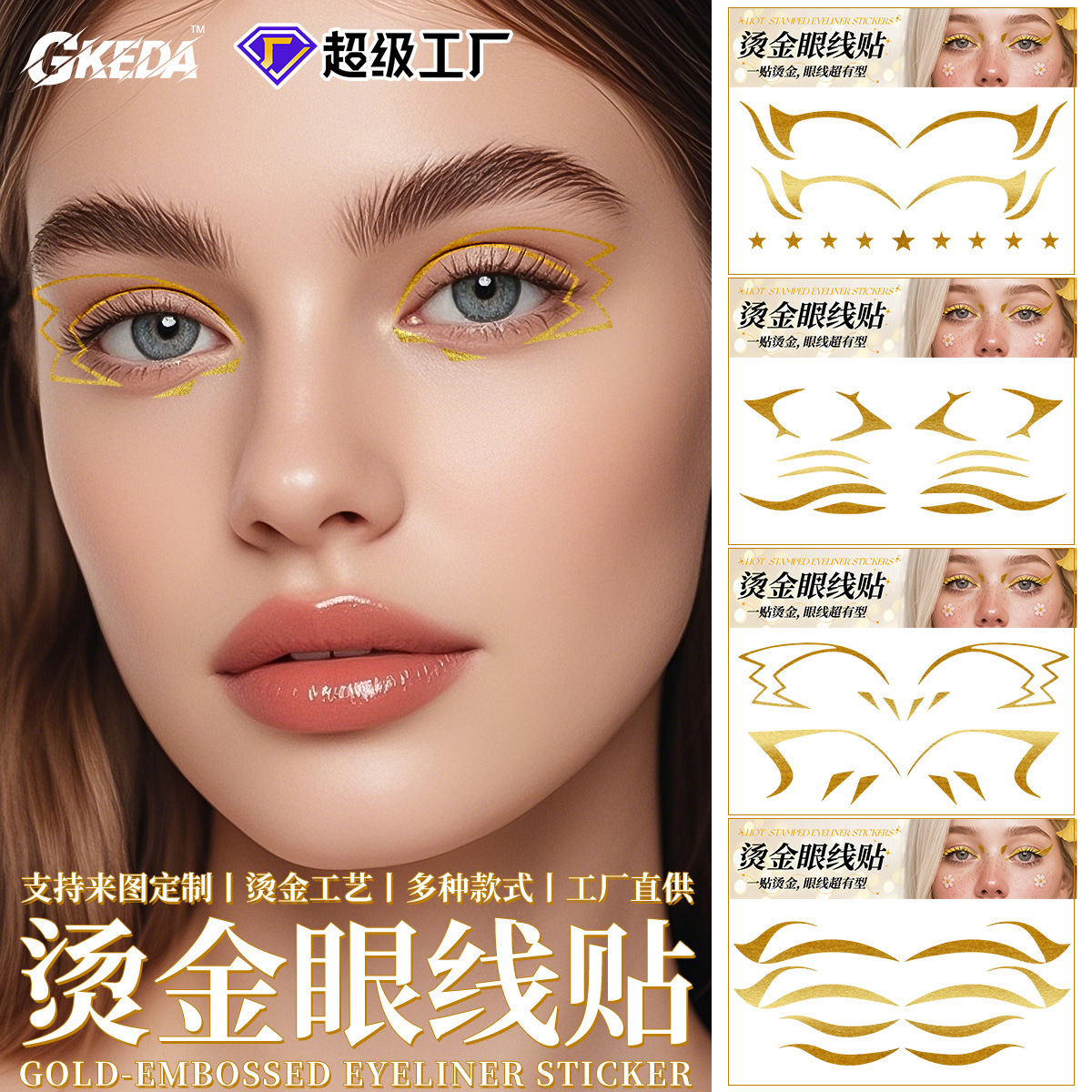 新款防水烫金眼线纹身贴 派对魔术演出专用持久不脱色舞台装饰贴