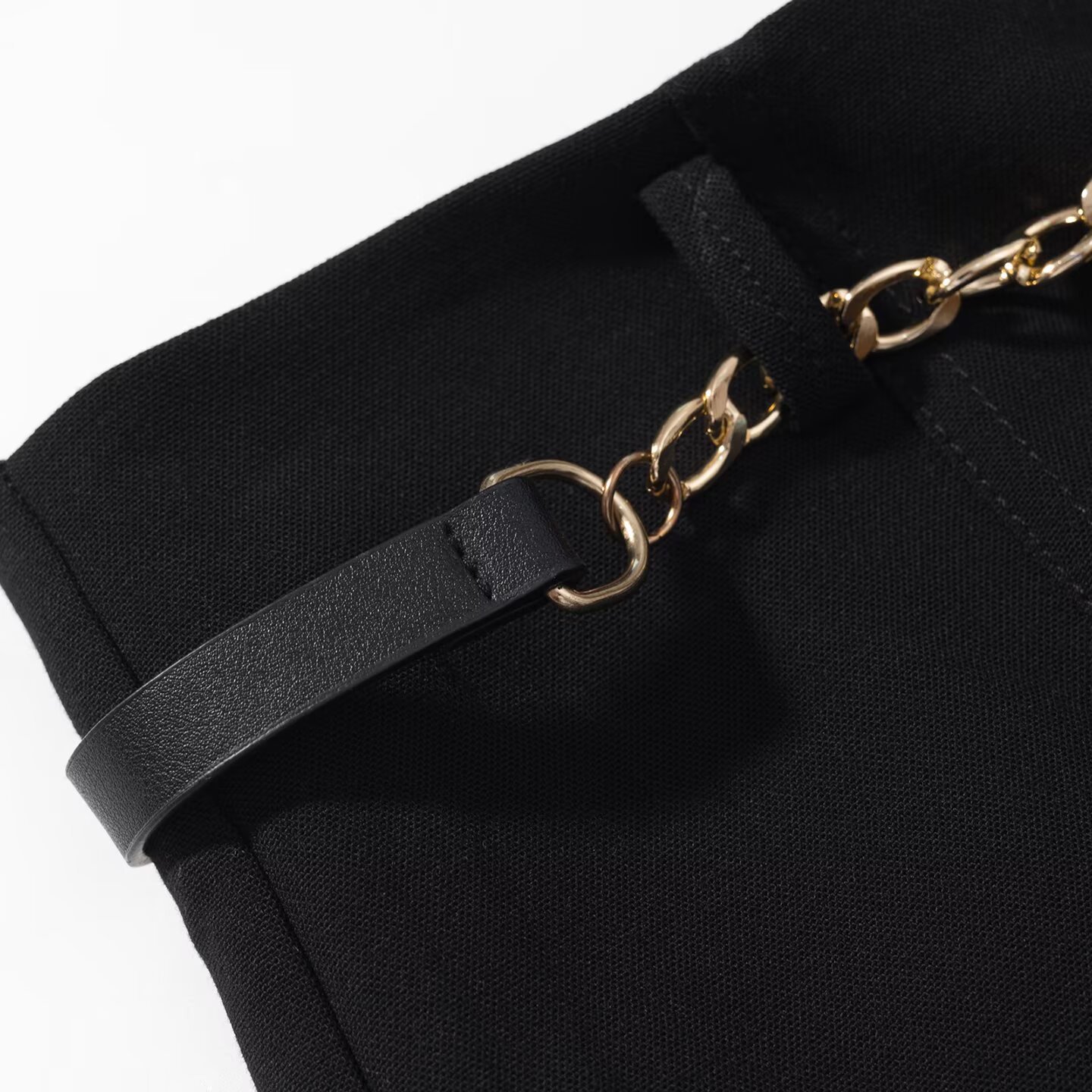 ZARZ 自制 欧美风 新款女装 短款双襟西装外套配链条腰带及踝裤