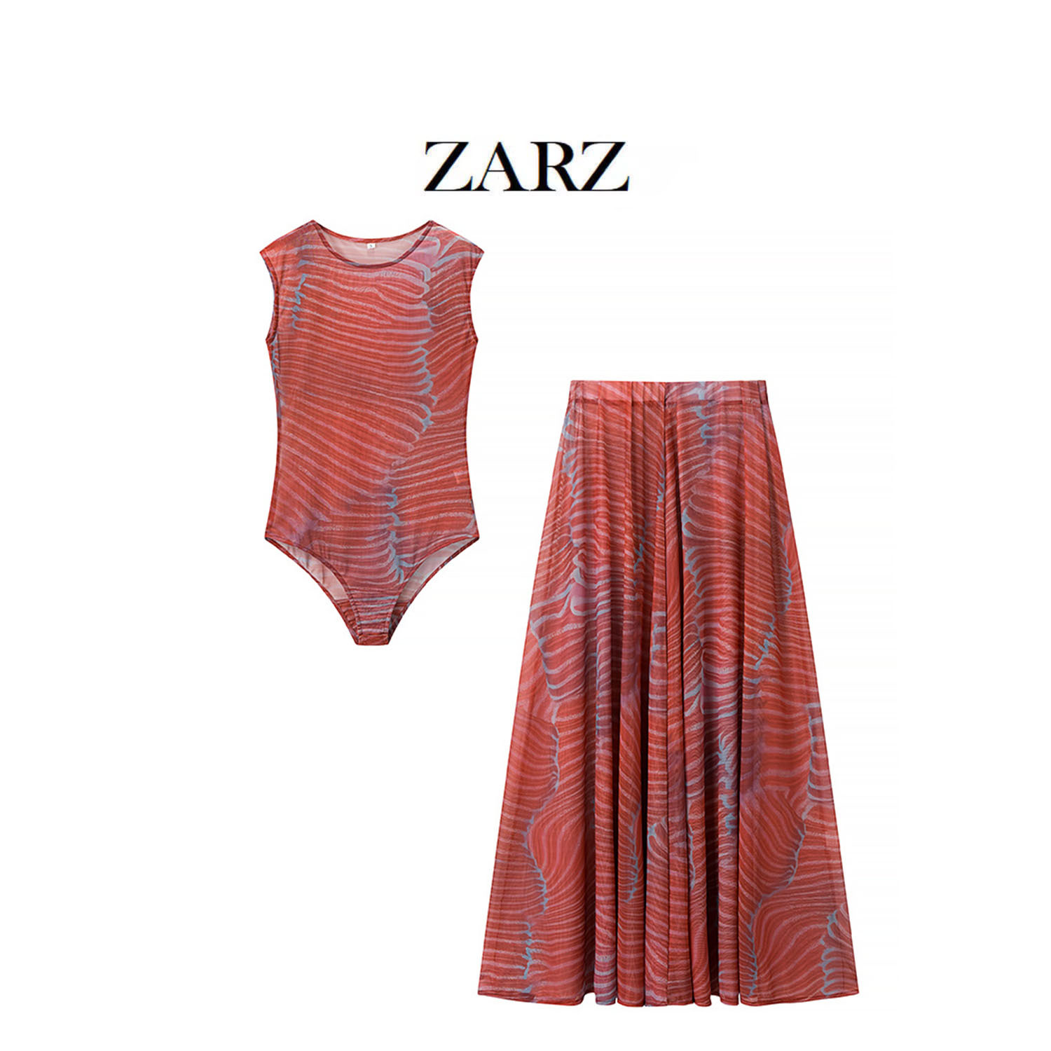 ZARZ 自制 欧美风 新款女装 洋气 时髦款 无袖上衣半身长裙套装