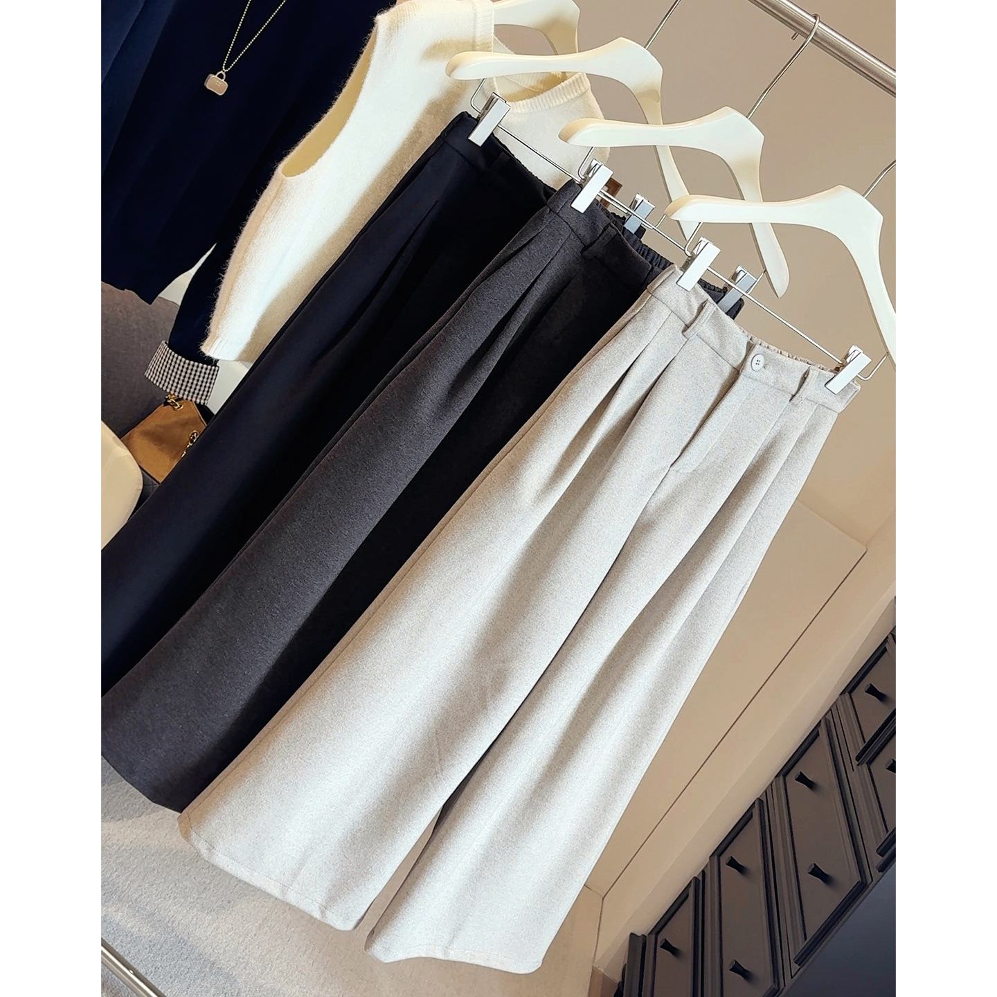 小个子加厚毛呢阔腿长裤女秋冬25新款高腰宽松休闲窄版直筒九分裤