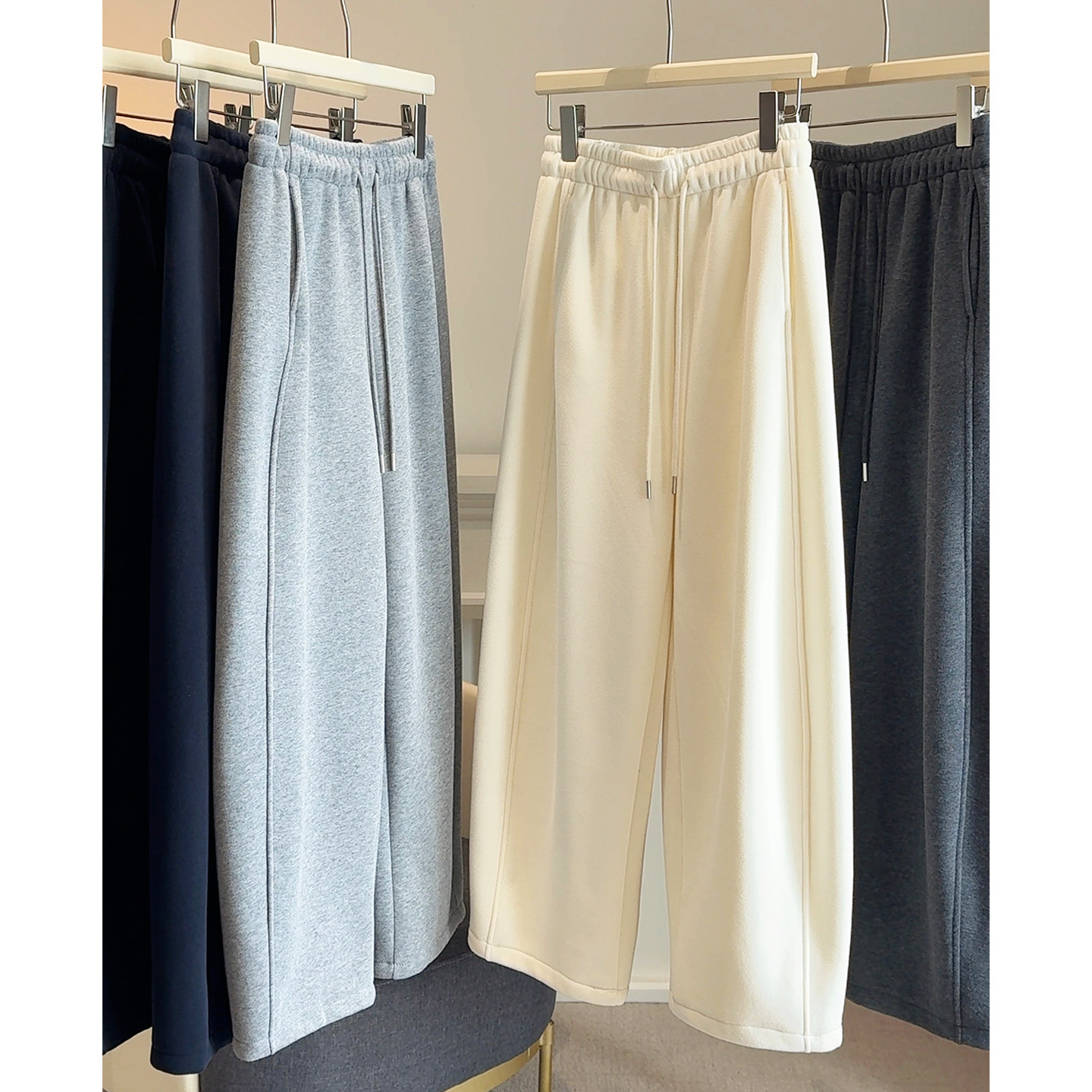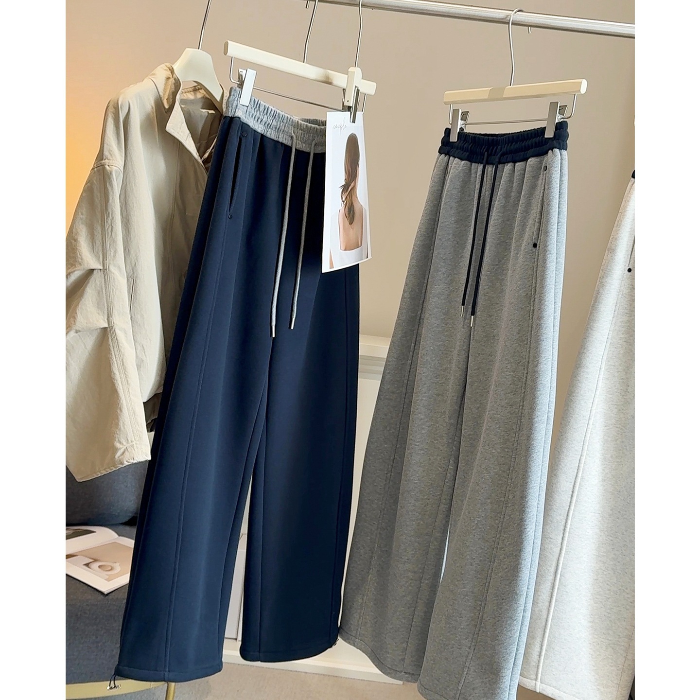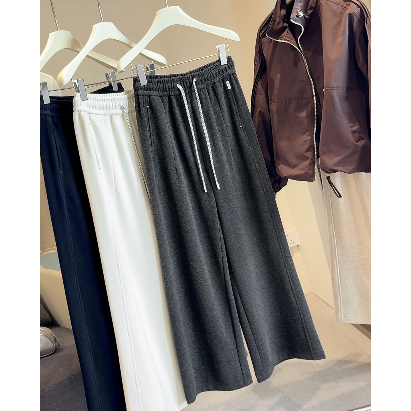 高腰加绒加厚糯米裤女2025冬宽松百搭阔腿裤休闲运动直筒拖地裤子
