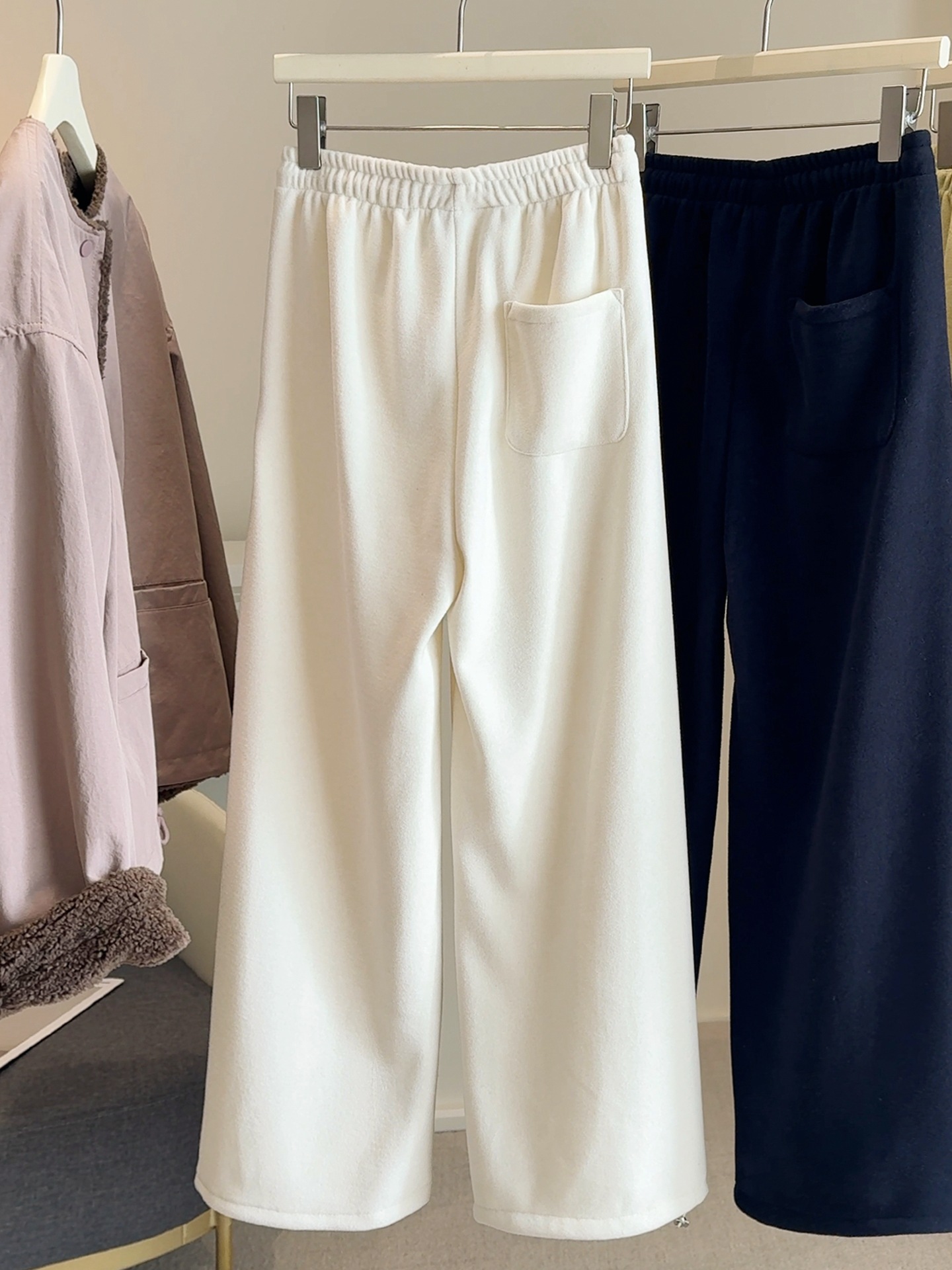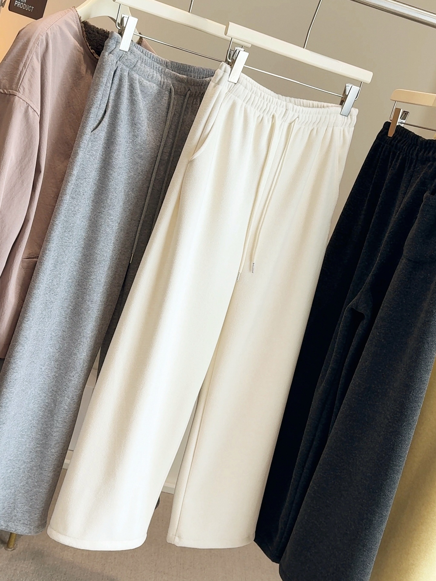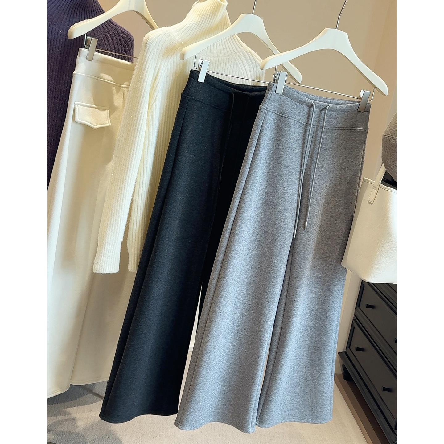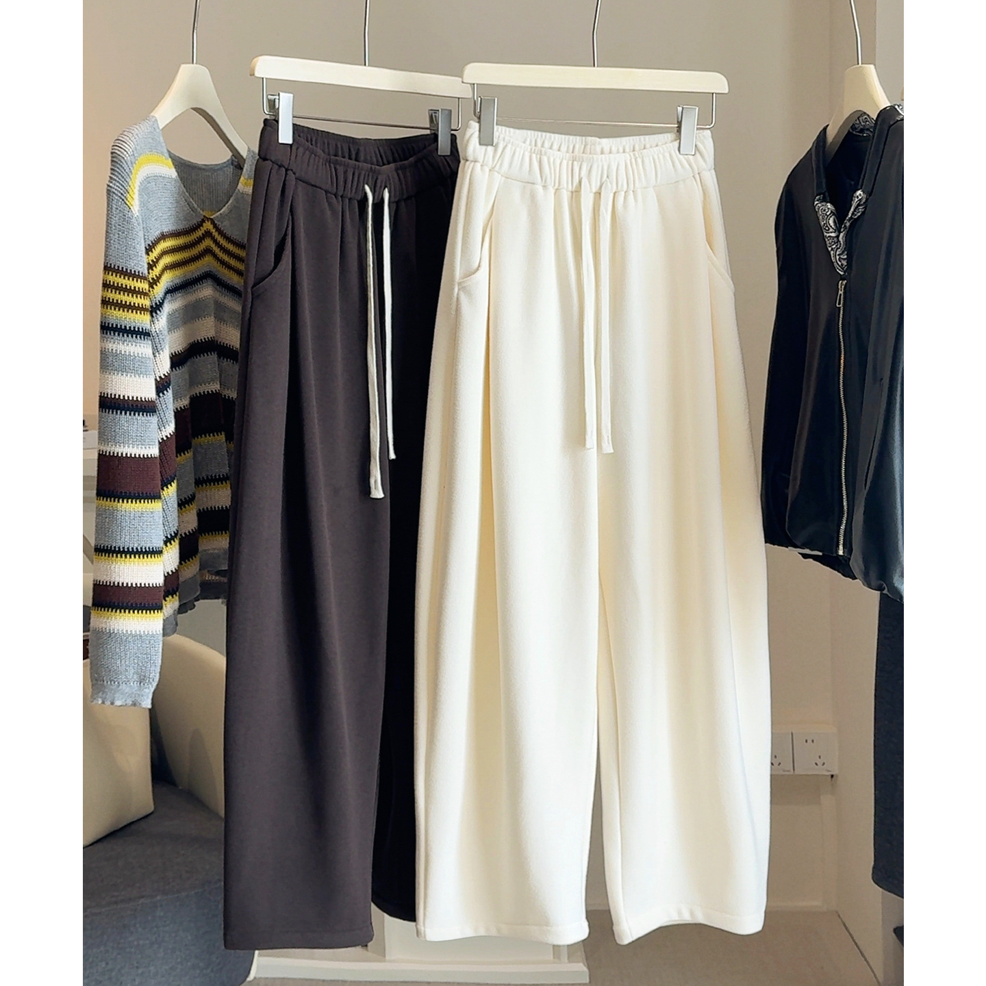 十三行2025秋冬新款加绒加厚高腰抽绳直筒裤女仿羊绒显瘦休闲长裤