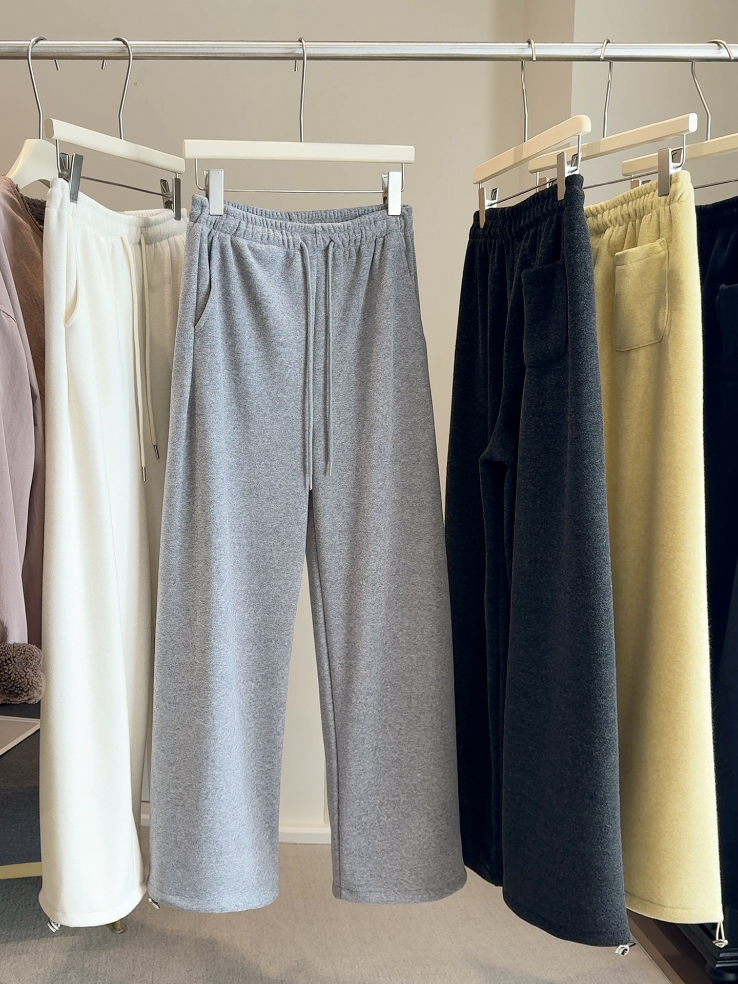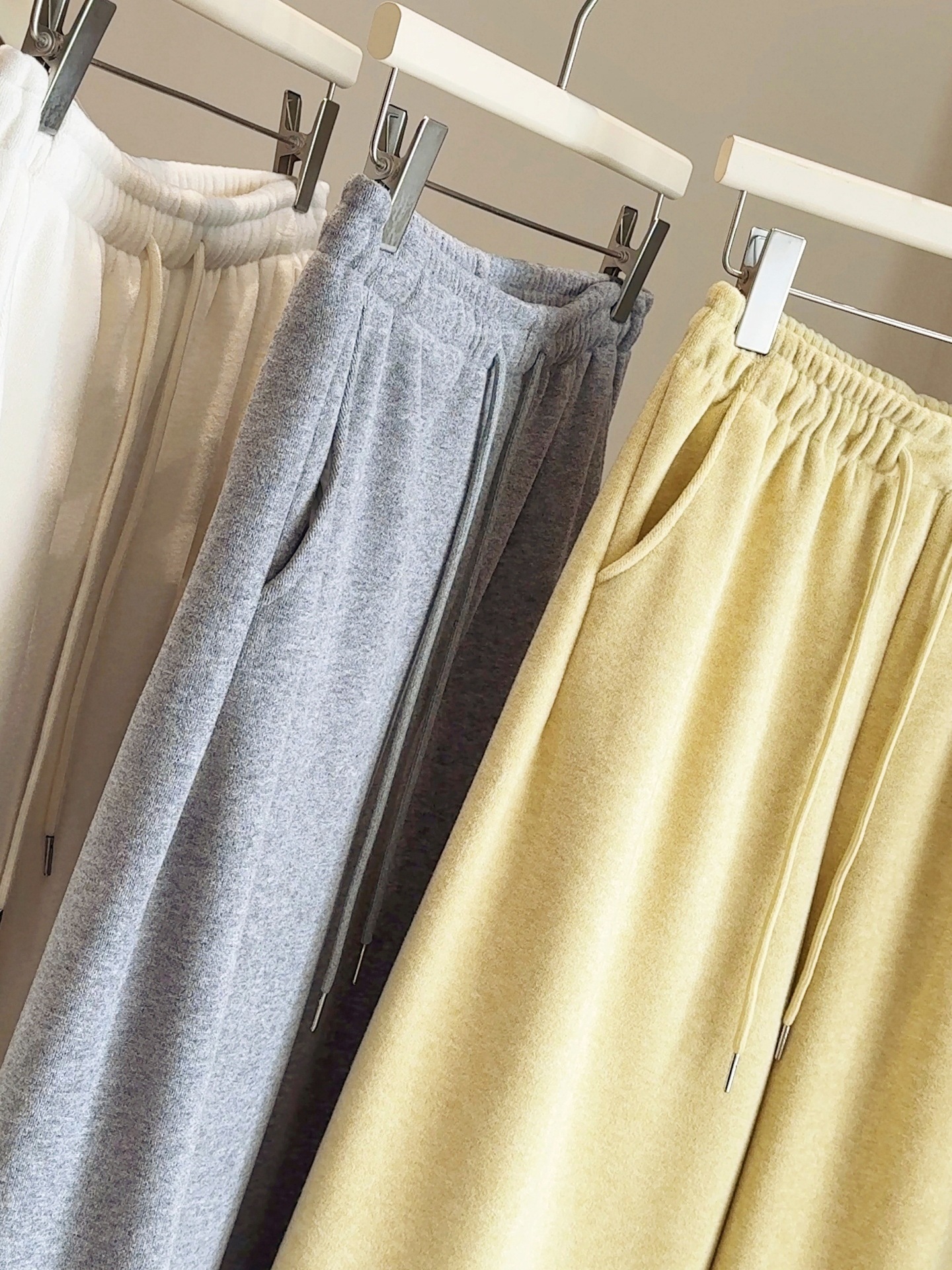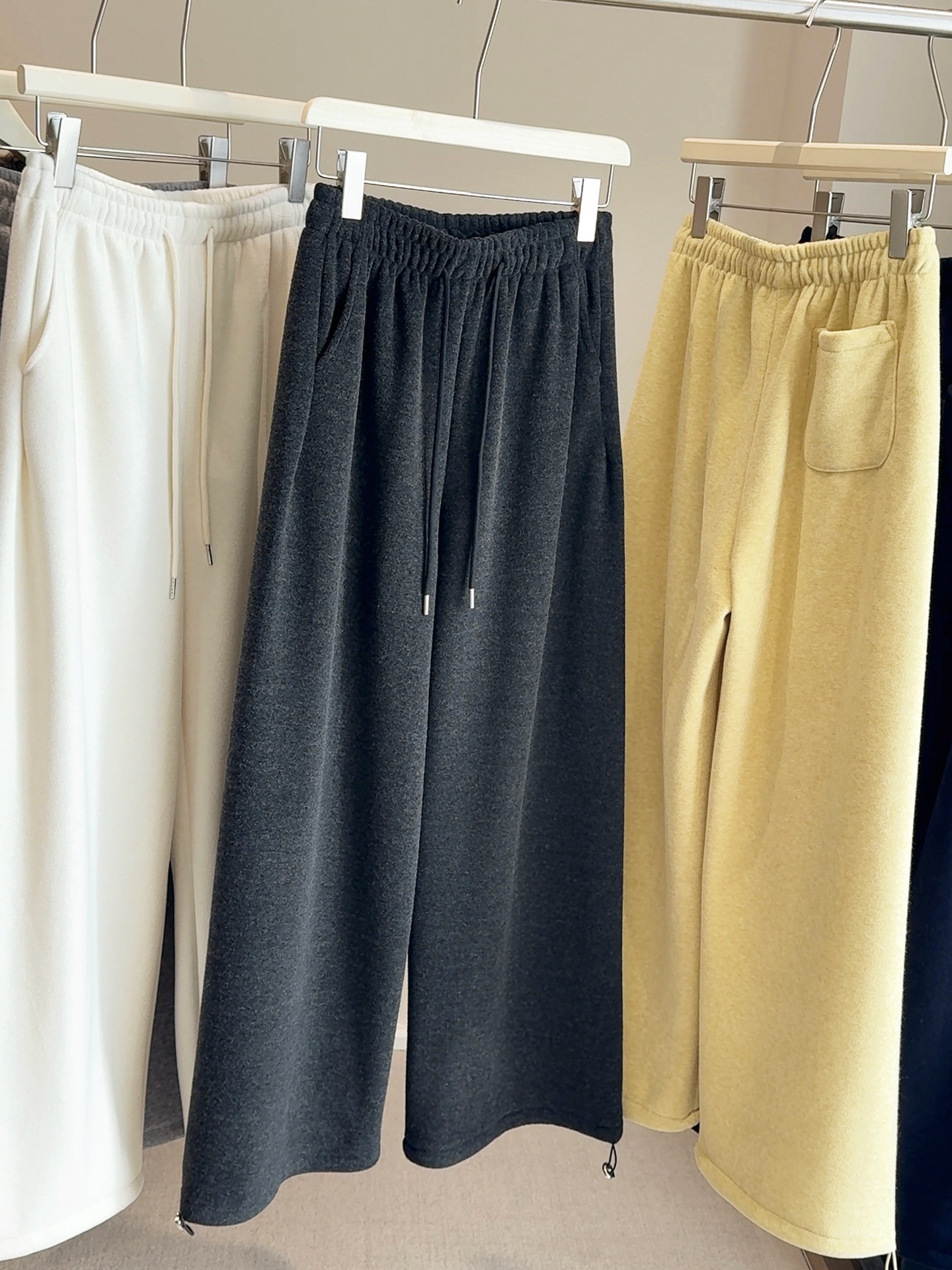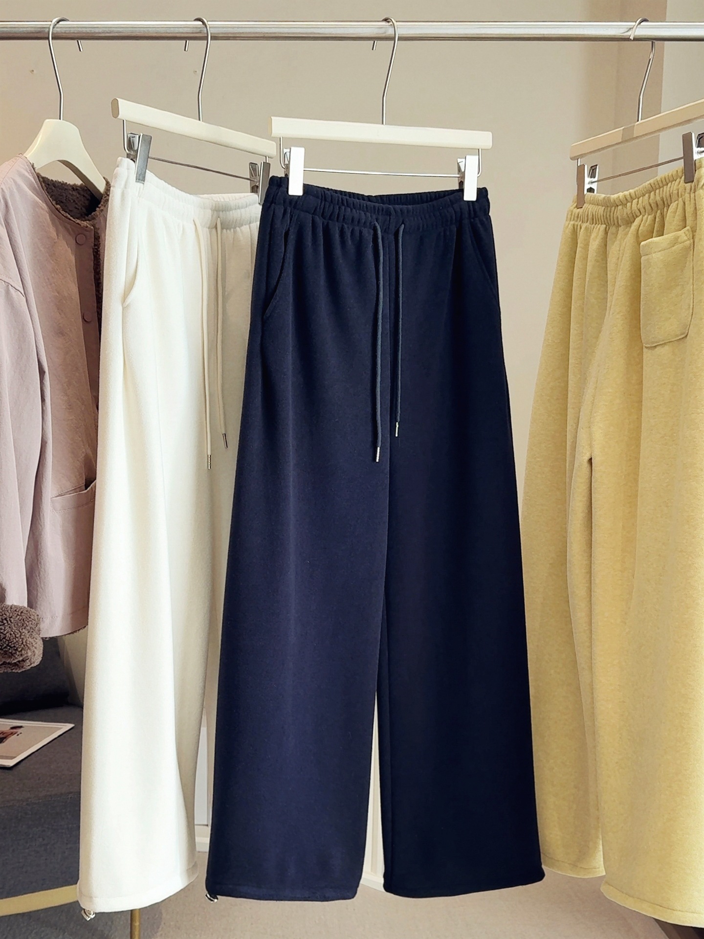 十三行2025秋冬新款加绒加厚高腰抽绳直筒裤女仿羊绒显瘦休闲长裤