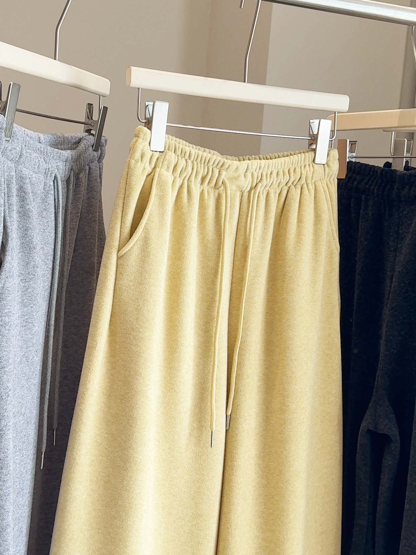 加厚休闲仿羊毛阔腿裤女2025秋冬季新款松紧高腰软糯直筒运动裤子