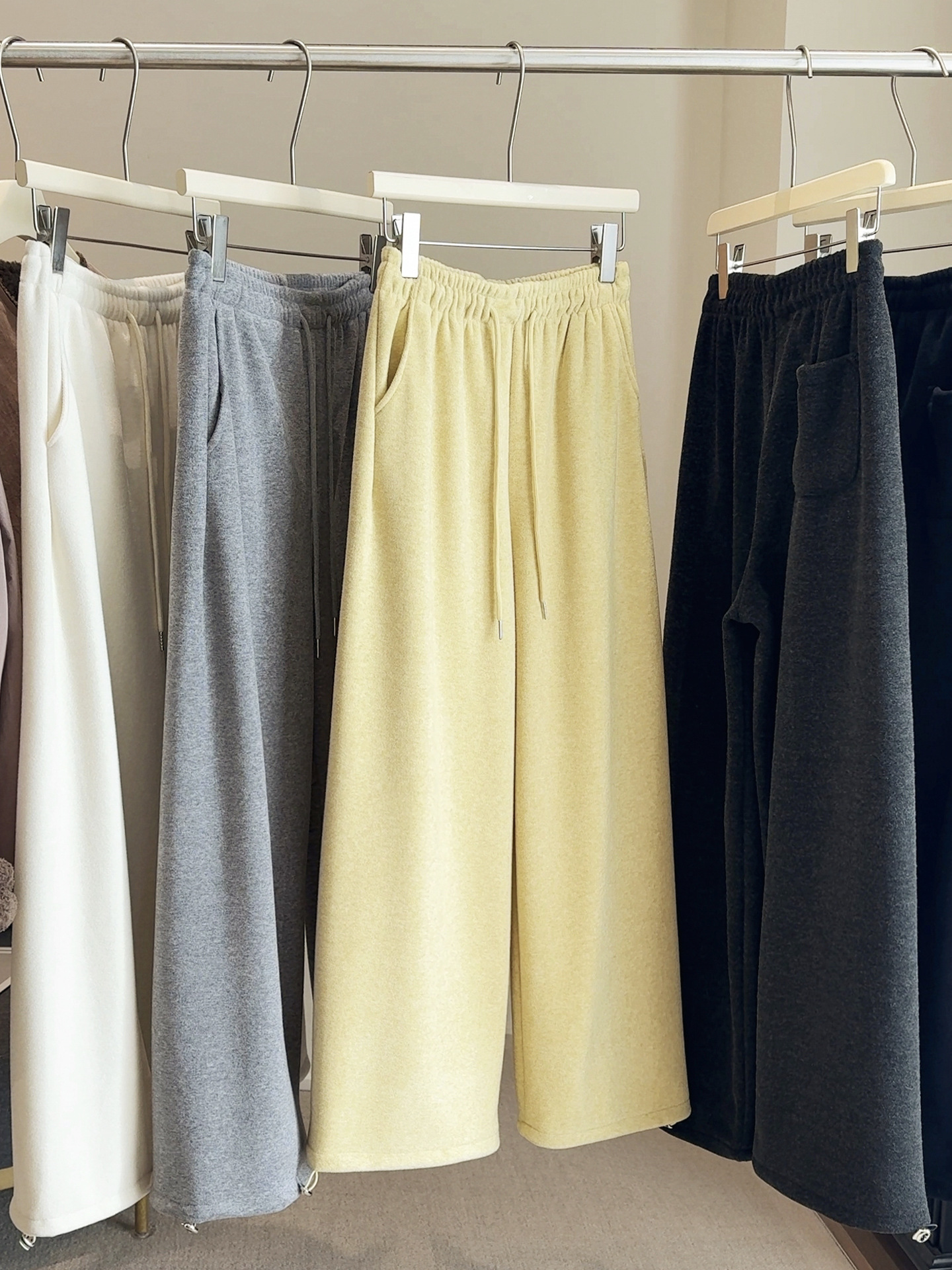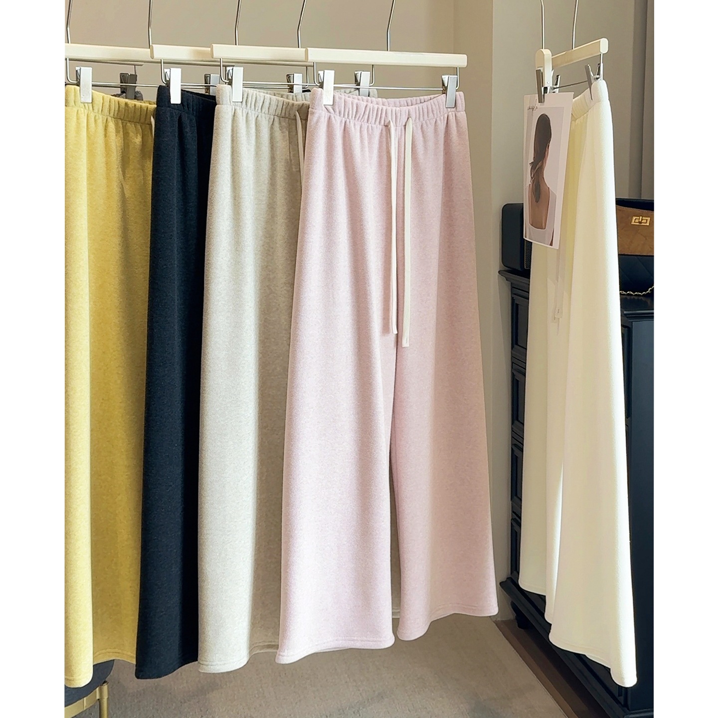 加绒加厚糯米毛巾绒阔腿裤女冬日韩系宽松百搭垂感拖地直筒休闲裤