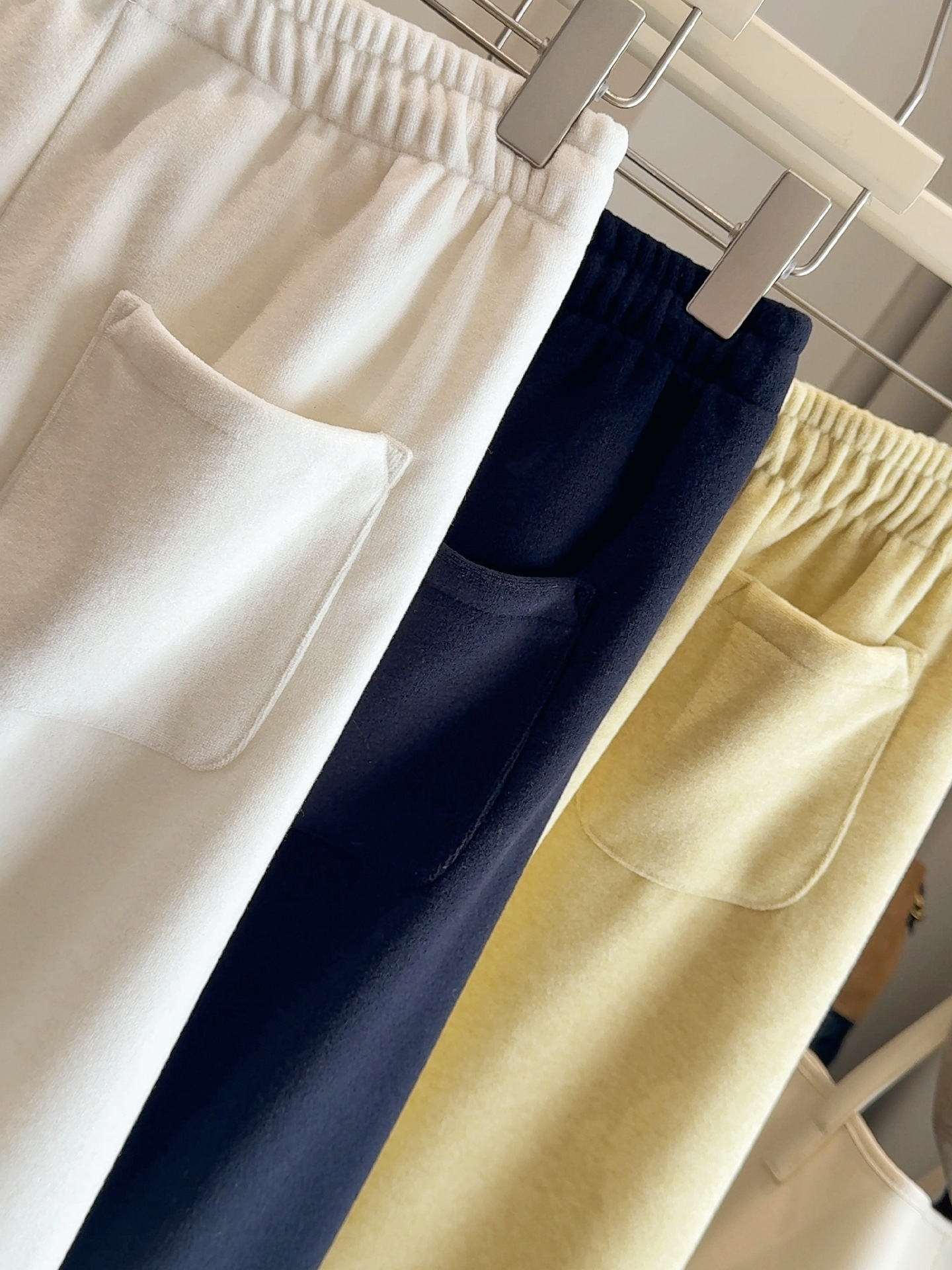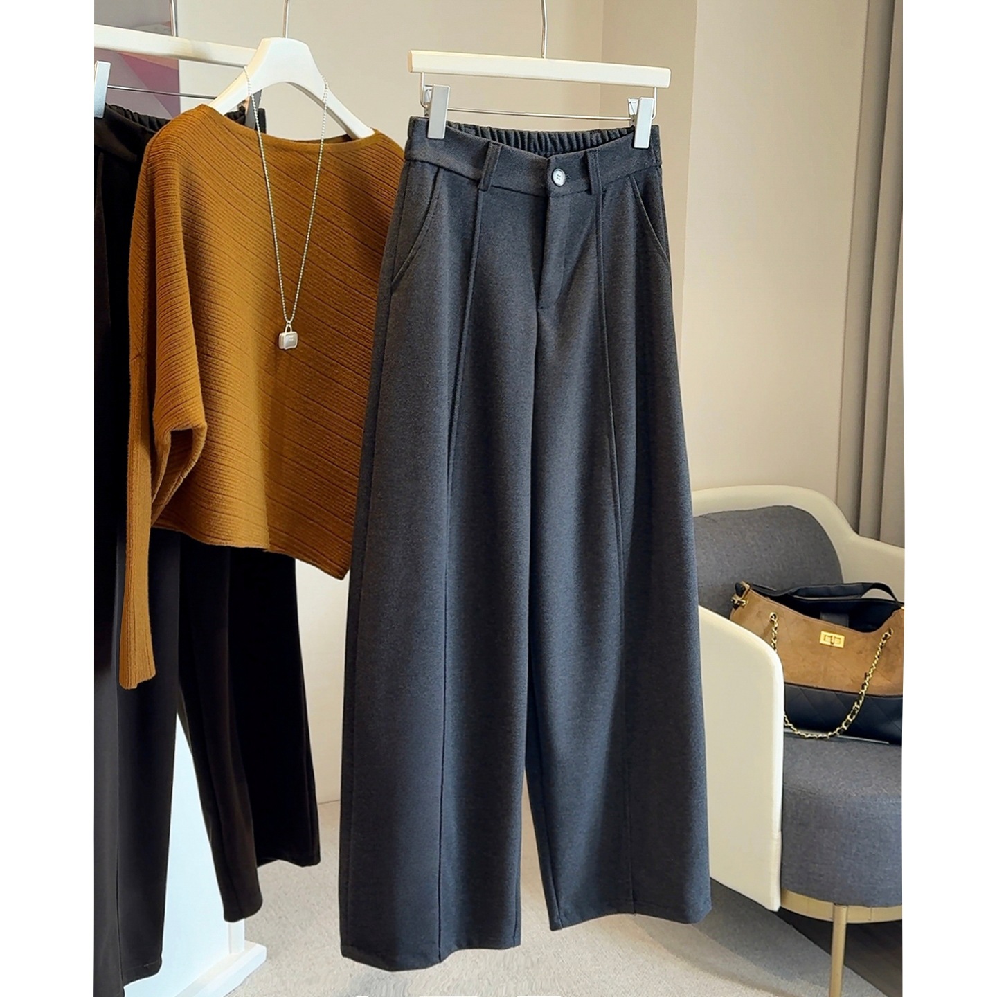 冬季加绒加厚小个子休闲阔腿糯米裤女2025新款慵懒风宽松直筒长裤