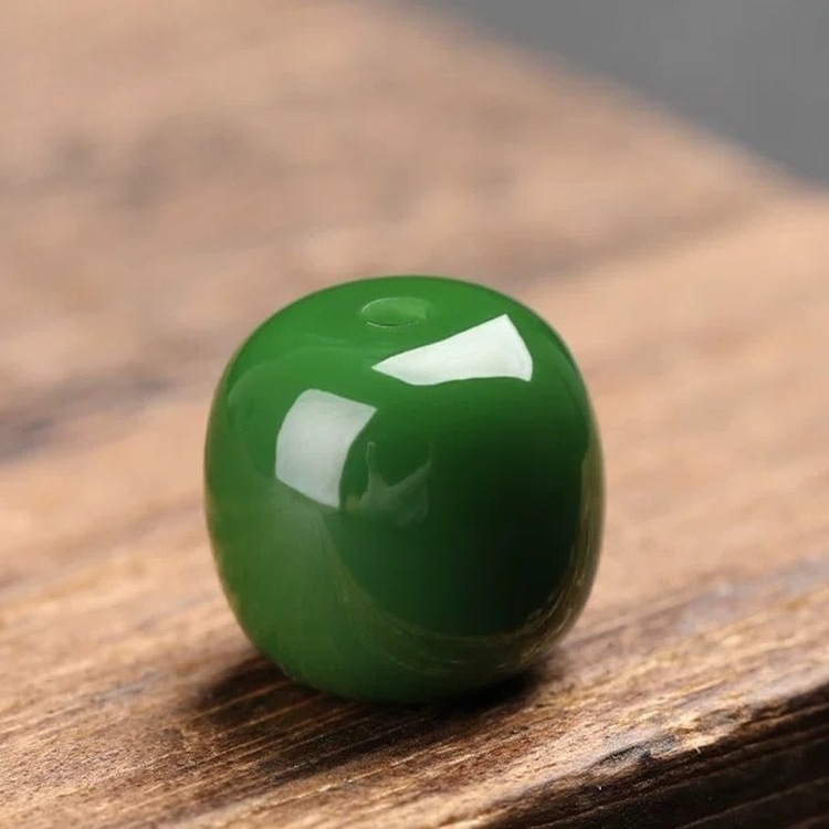 精品俄料碧玉单珠散珠老型珠桶珠菠菜绿正阳绿色圆珠和田玉无杂黑
