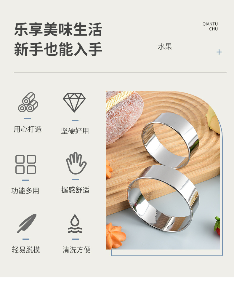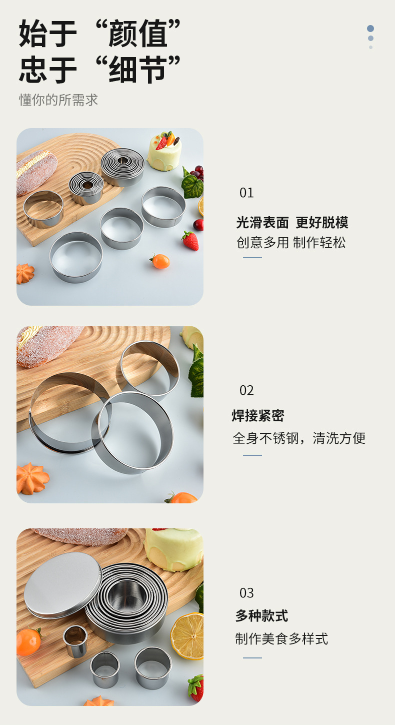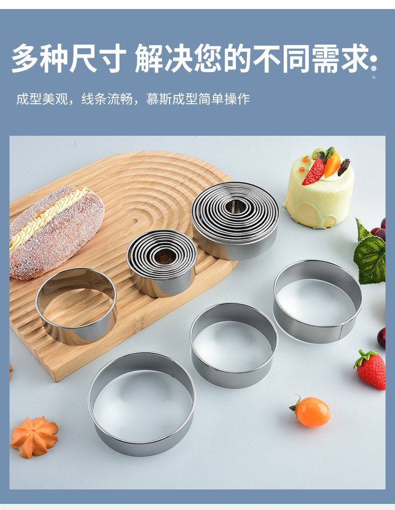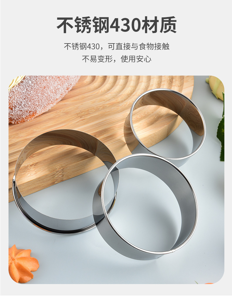 8寸6寸4寸圆形不锈钢慕斯圈蛋糕模一套加高厨房烘培用具甜甜圈模