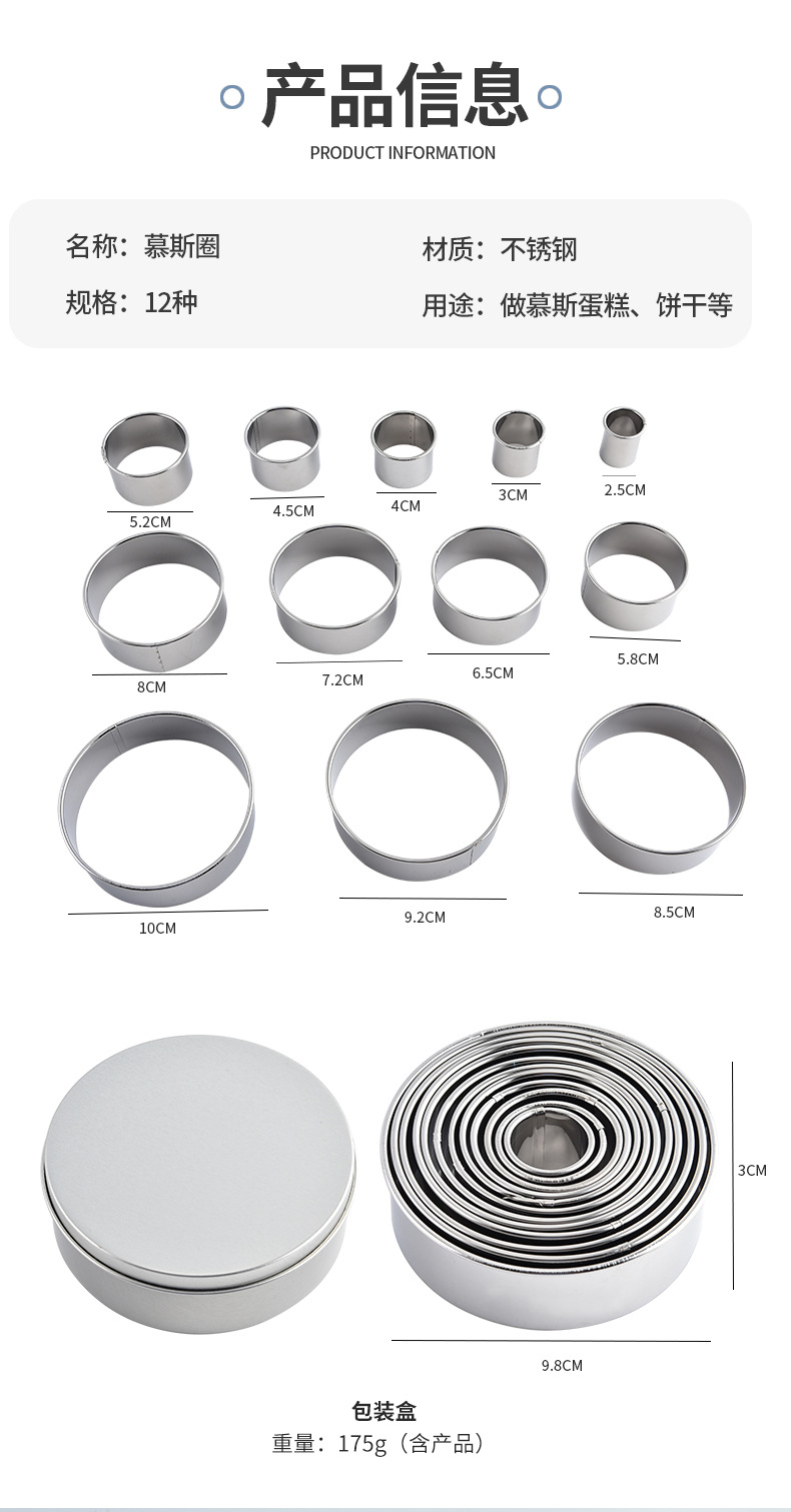 规格 慕斯圈11件套(opp袋),慕斯圈11件套(铝盒装),慕斯圈12件套(opp袋)
