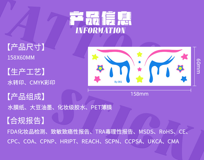 新款防水烫金眼线纹身贴 派对魔术演出专用持久不脱色舞台装饰贴
