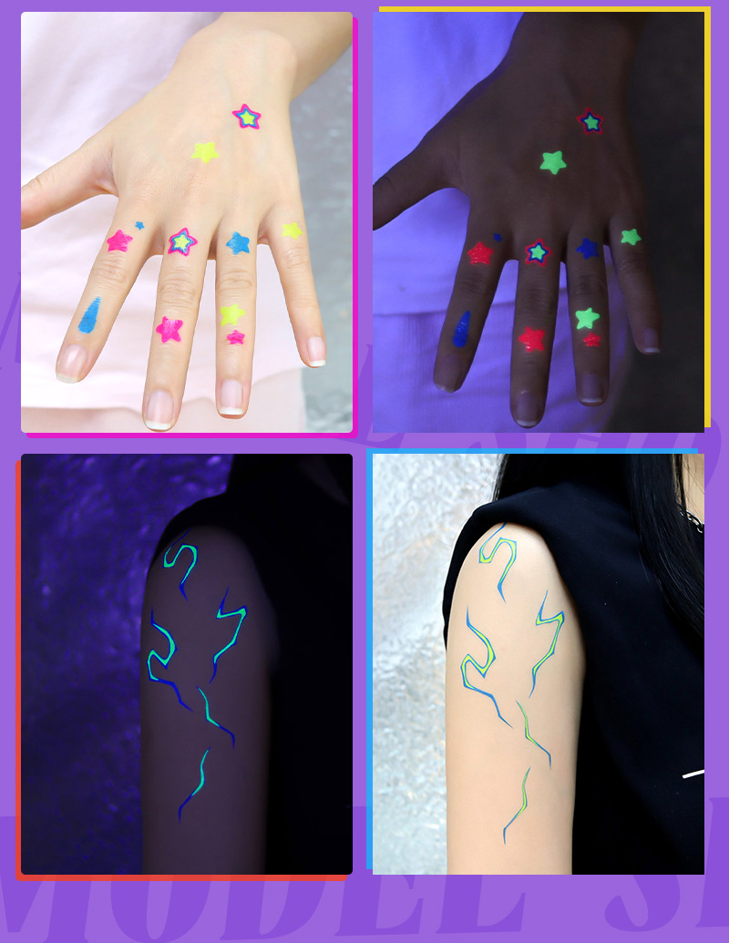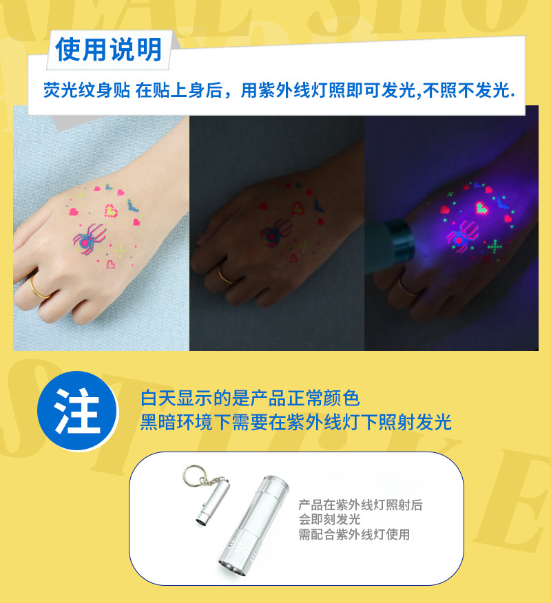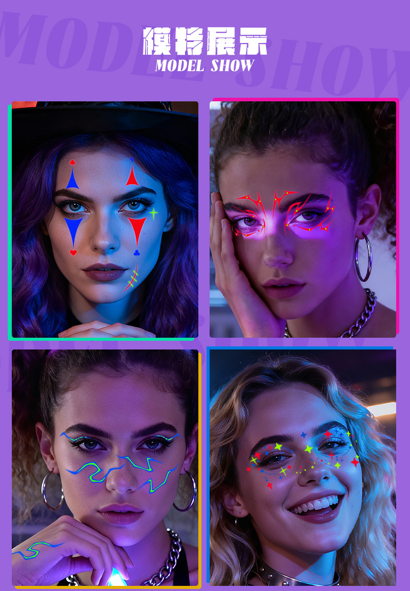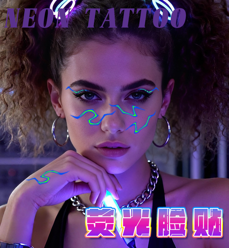 跨境新款欧美荧光脸贴仿真夜店派对舞会电音节霓虹发光炫彩纹身贴