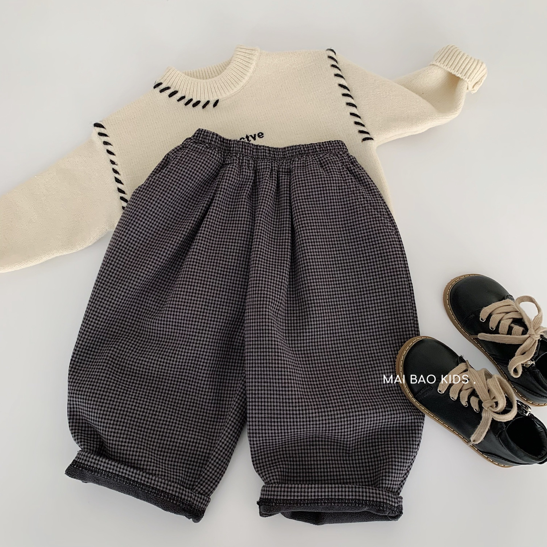 麦宝儿童加厚休闲裤2026冬季新款男女童宽松格子长裤男孩裤子代发