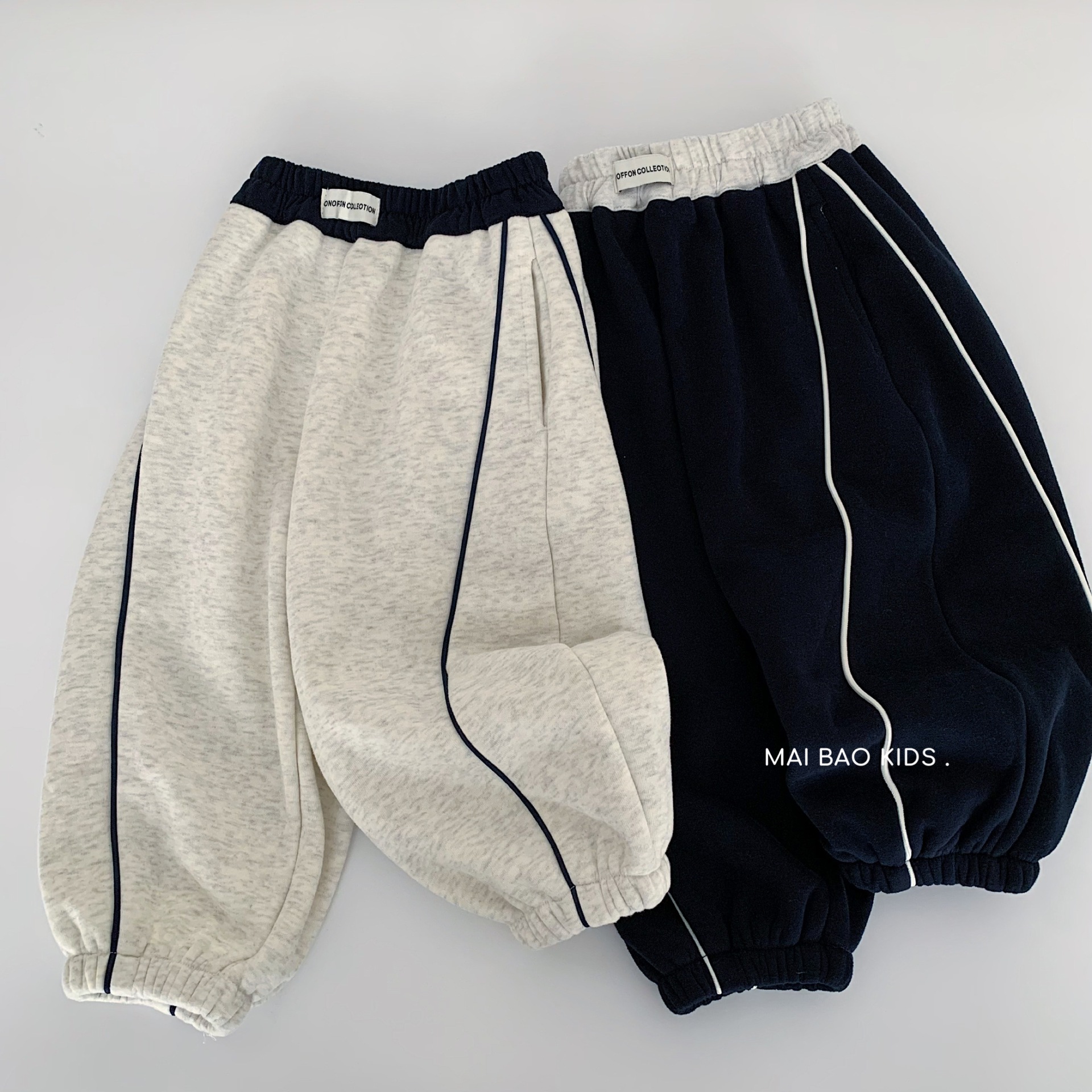 麦宝子供用スウェットパンツ2026冬男の子無地切り替え厚手カジュアルパンツ新作子供服韓国風長ズボン流行