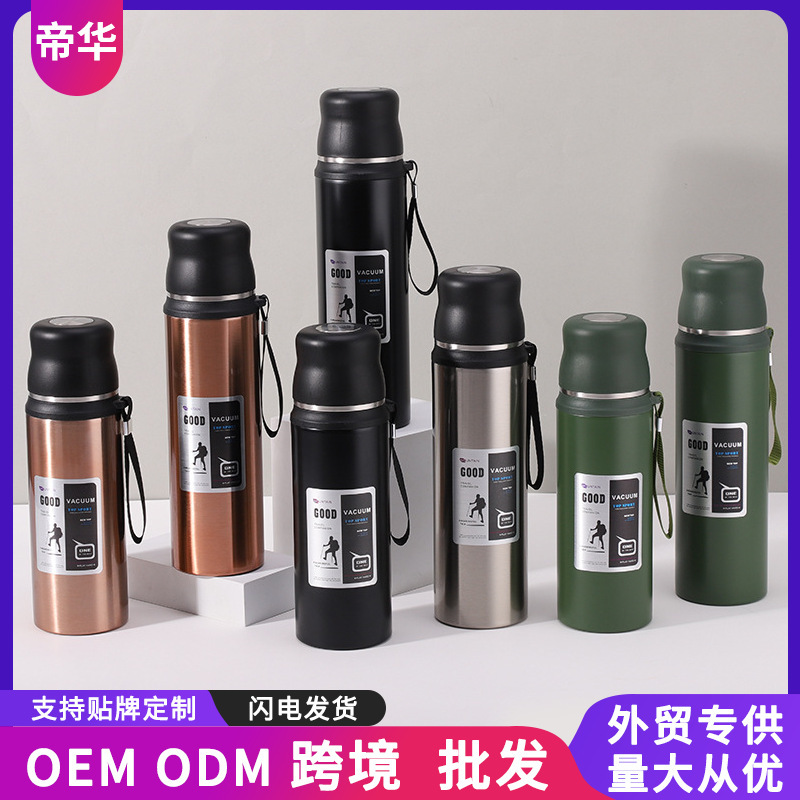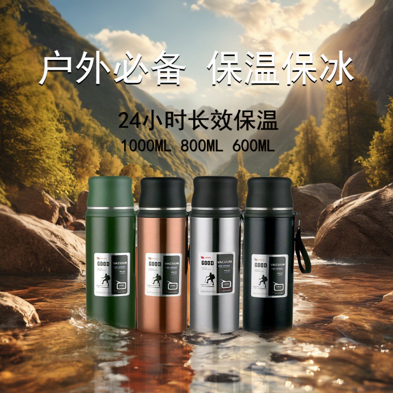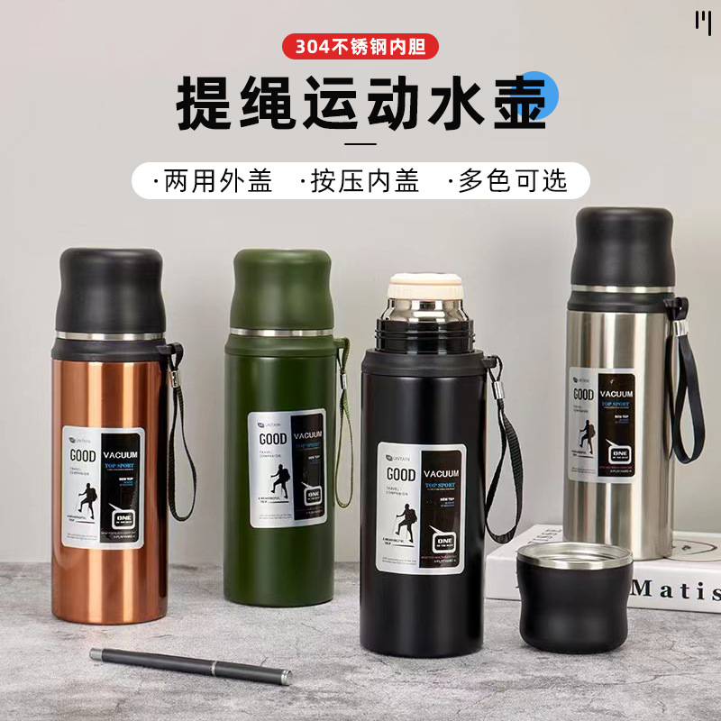 厂家大容量304不锈钢保温杯便携提绳户外运动水壶长效保温全钢壶