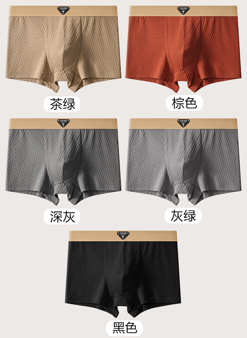 抖音爆款纯棉男士内裤一百棉抑菌内档舒适高档纹理棉质男士四角裤
