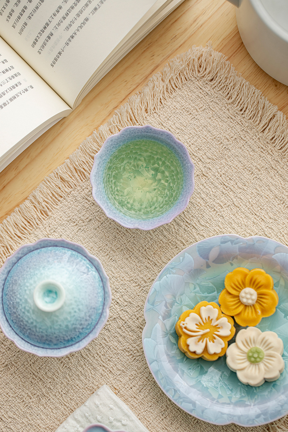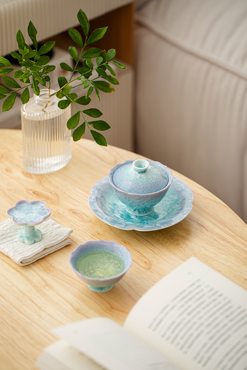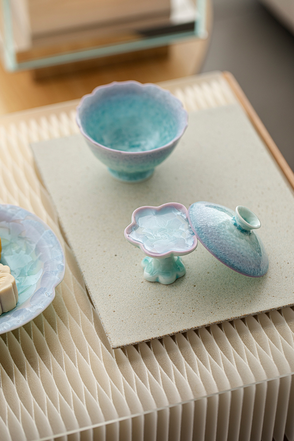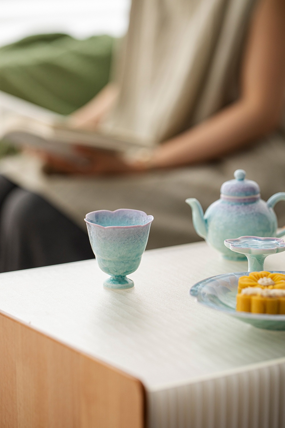 颜色 结晶釉-紫青凝-青灯壶,结晶釉-紫青凝-棱花高足盖碗,结晶釉-紫青凝-卷边壶承,结晶釉-紫青凝-花边咖啡杯,结晶釉-紫青凝-棱花高足茶杯,结晶釉-紫青凝-朵瓣高足茶杯,结晶釉-紫青凝-高足花朵盖置