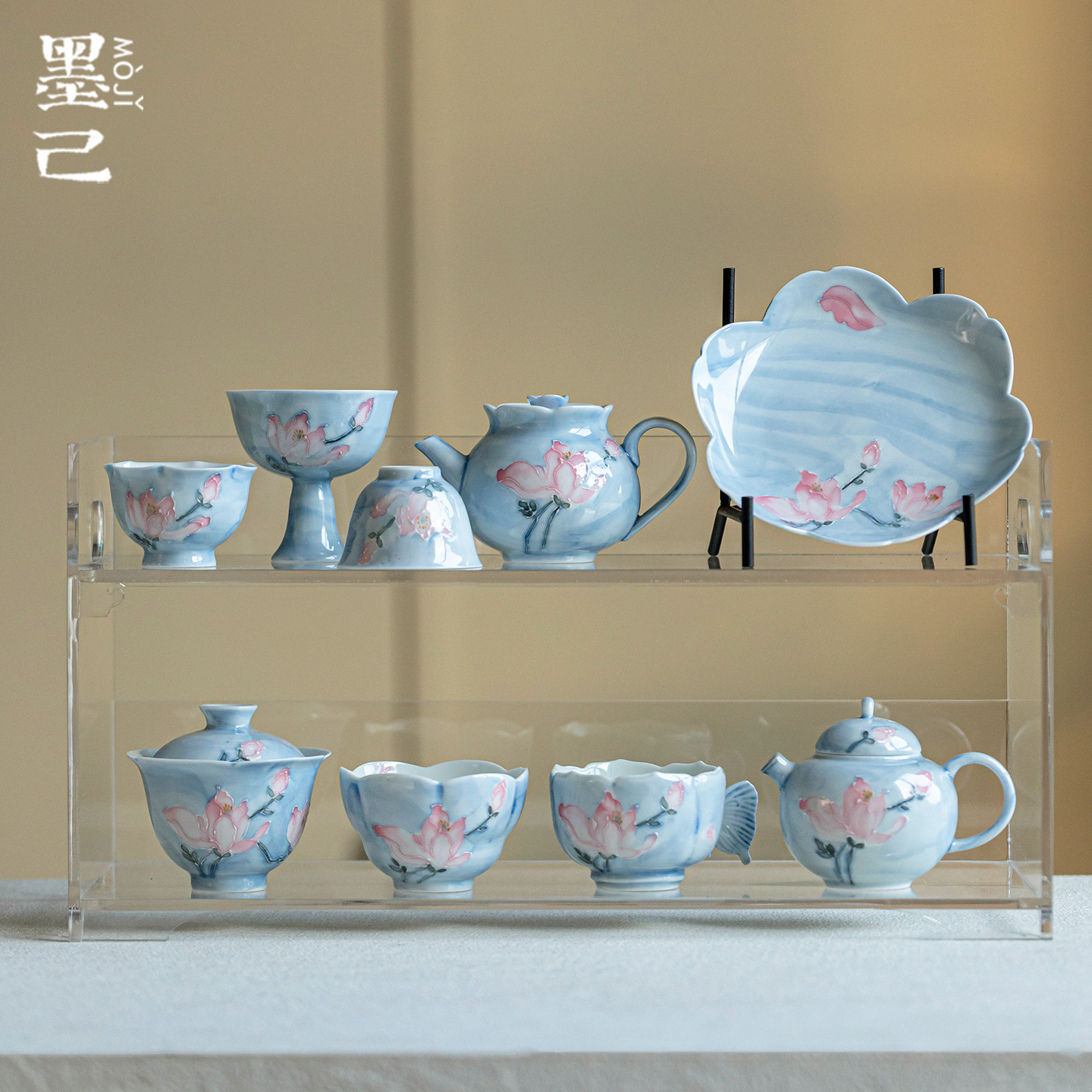 墨己有田烧雾漫玉兰手绘釉下彩功夫茶具家用茶壶盖碗主人杯壶承