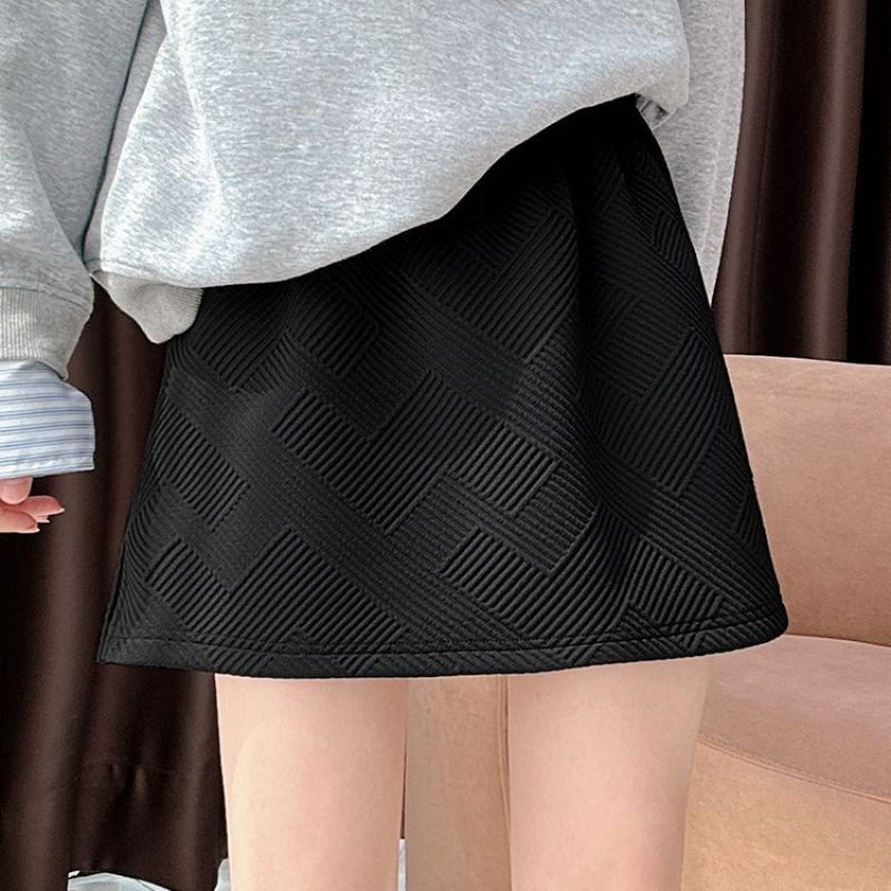 纯色菱形格夹棉短裙冬季女装松紧腰加厚防走光小众半身裙批发9835