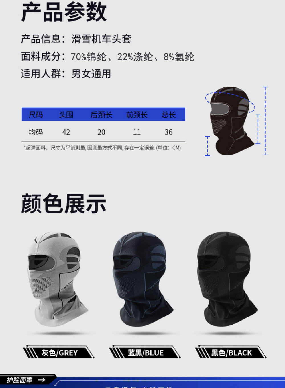 颜色 黑色【套头款】,藏蓝色【套头款】,灰色【套头款】,白色【套头款】,黑色-面罩款,黑灰色-面罩款,黑红色-面罩款,黑绿色-面罩款