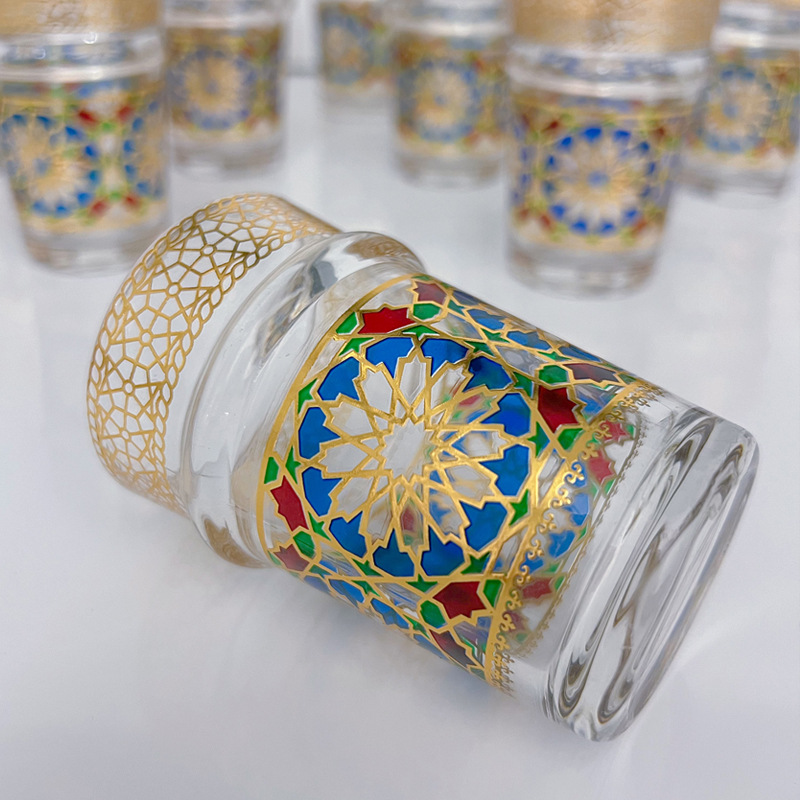 摩洛哥玻璃杯12件套红色绿色蓝色花纹阿拉伯餐厅水杯咖啡杯红茶杯