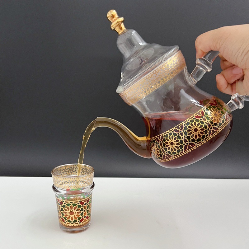 现货跨境轻奢摩洛哥玻璃茶壶烧水壶玻璃杯套装中东沙特礼品茶具
