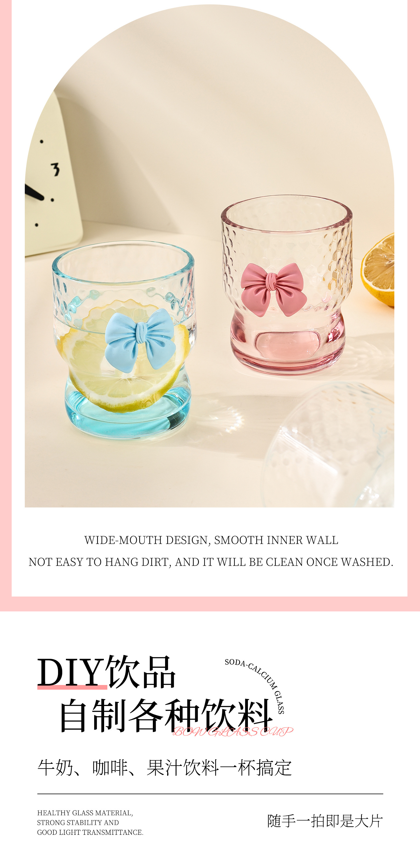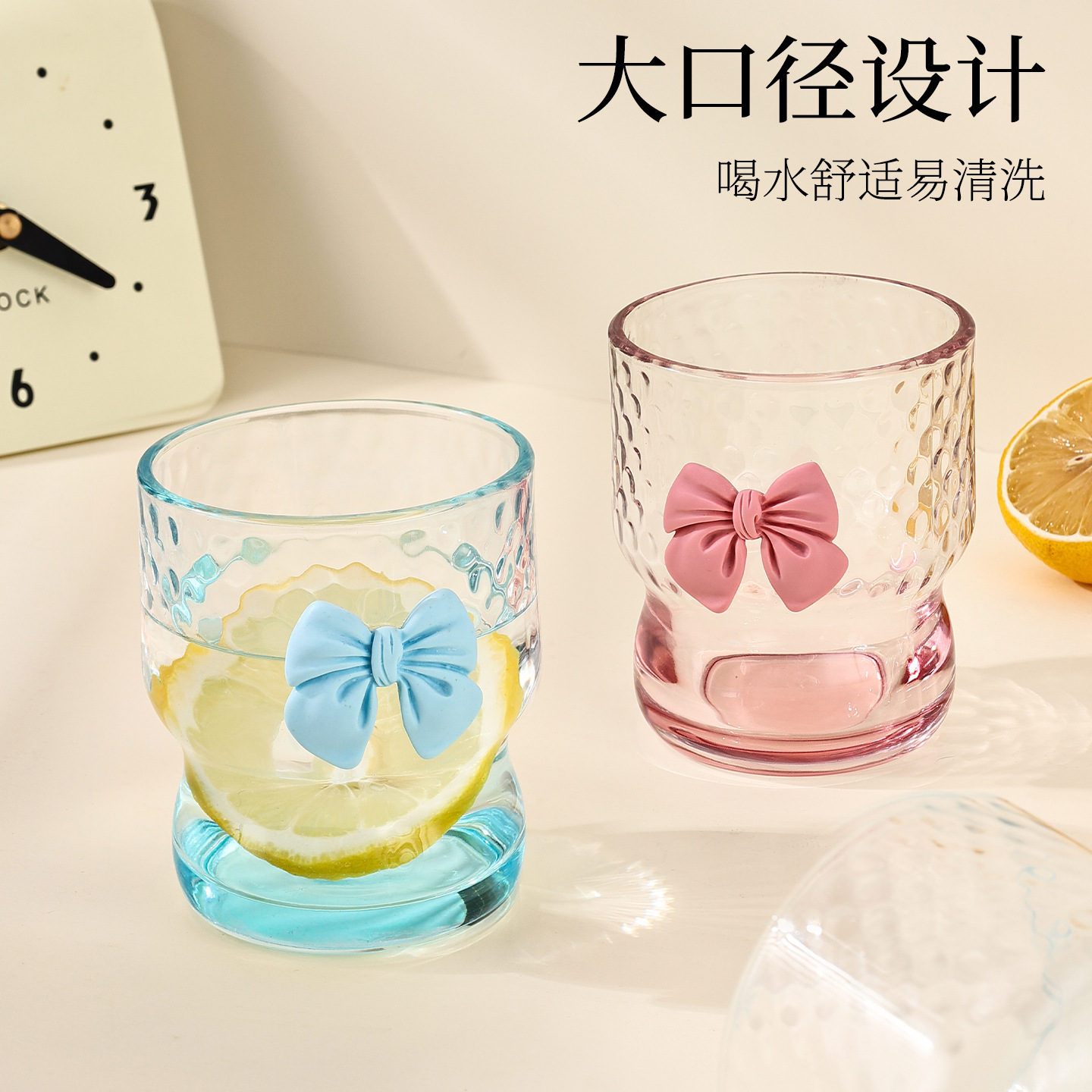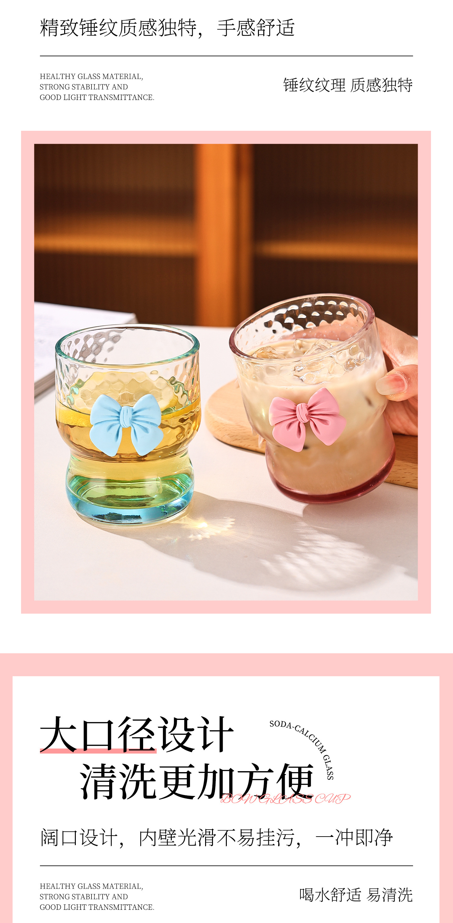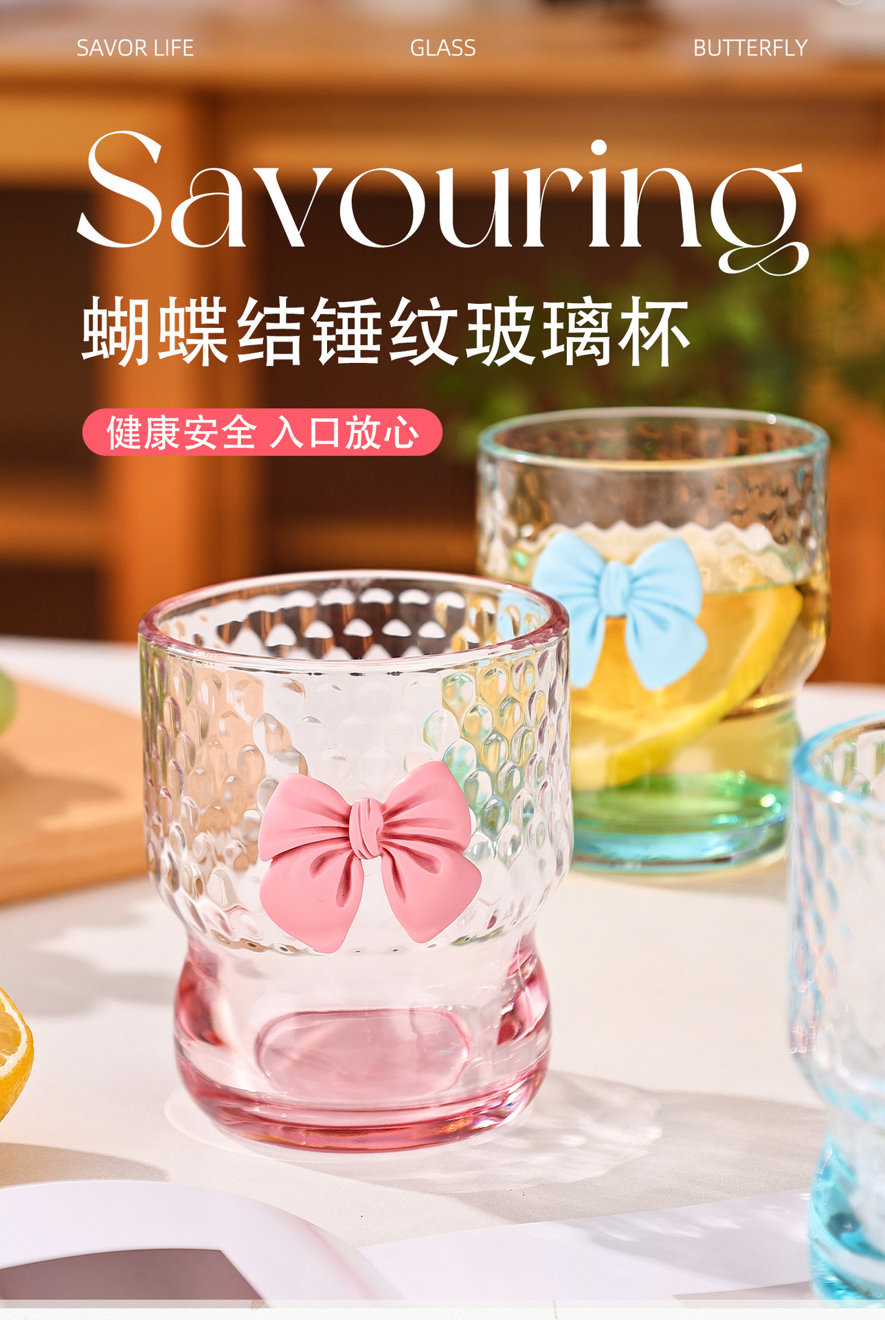 蝴蝶结锤纹水杯高颜值玻璃杯ins风创意咖啡杯喝水果茶饮料奶茶杯
