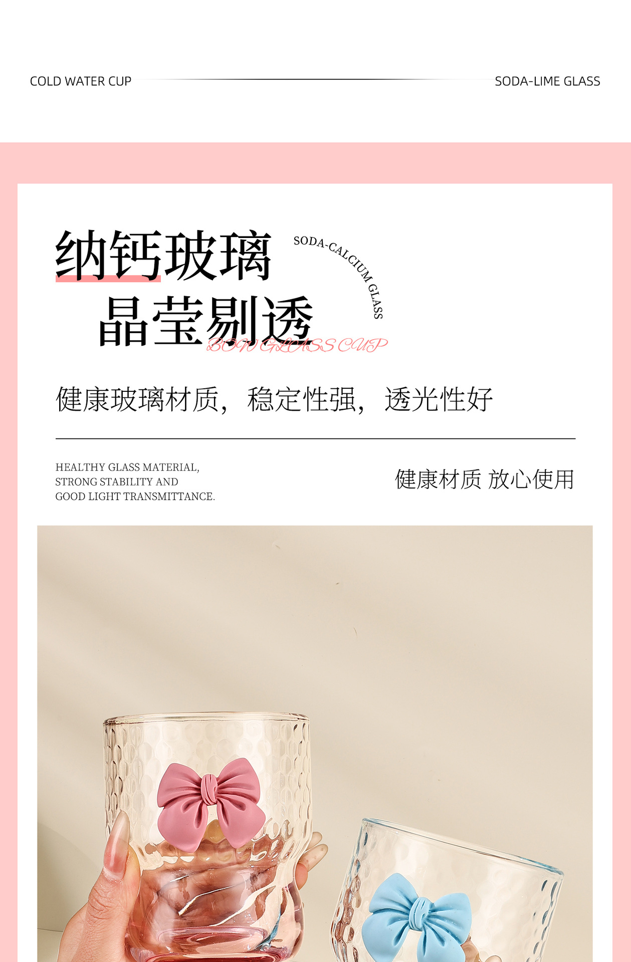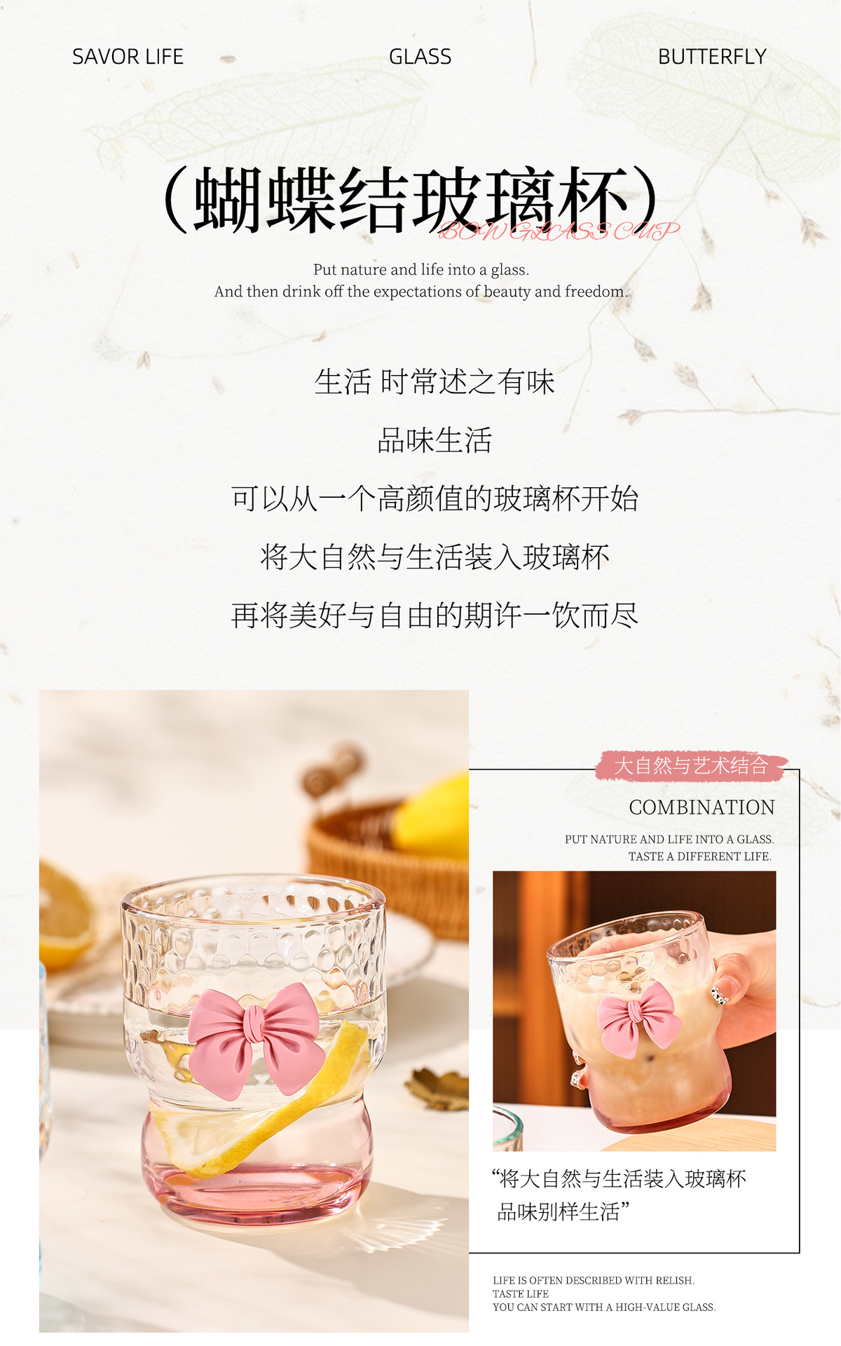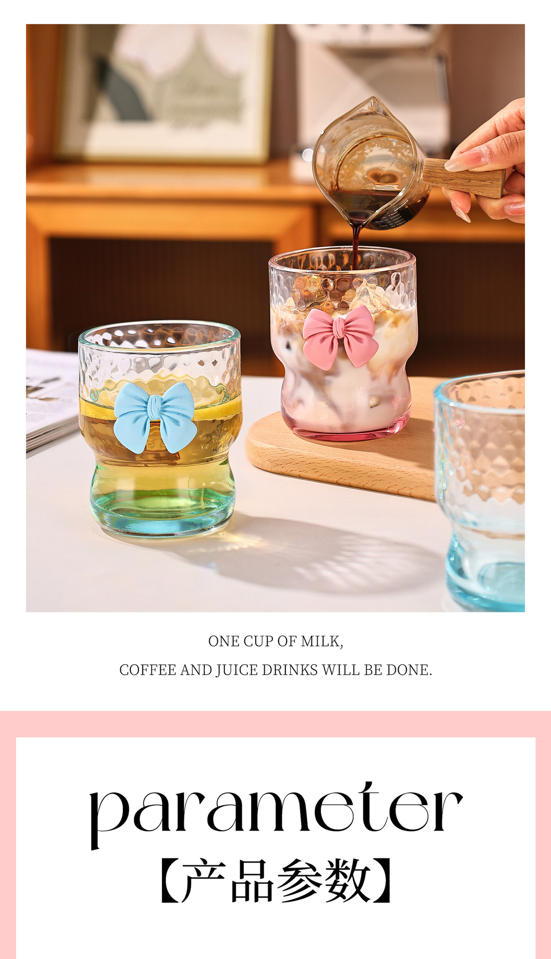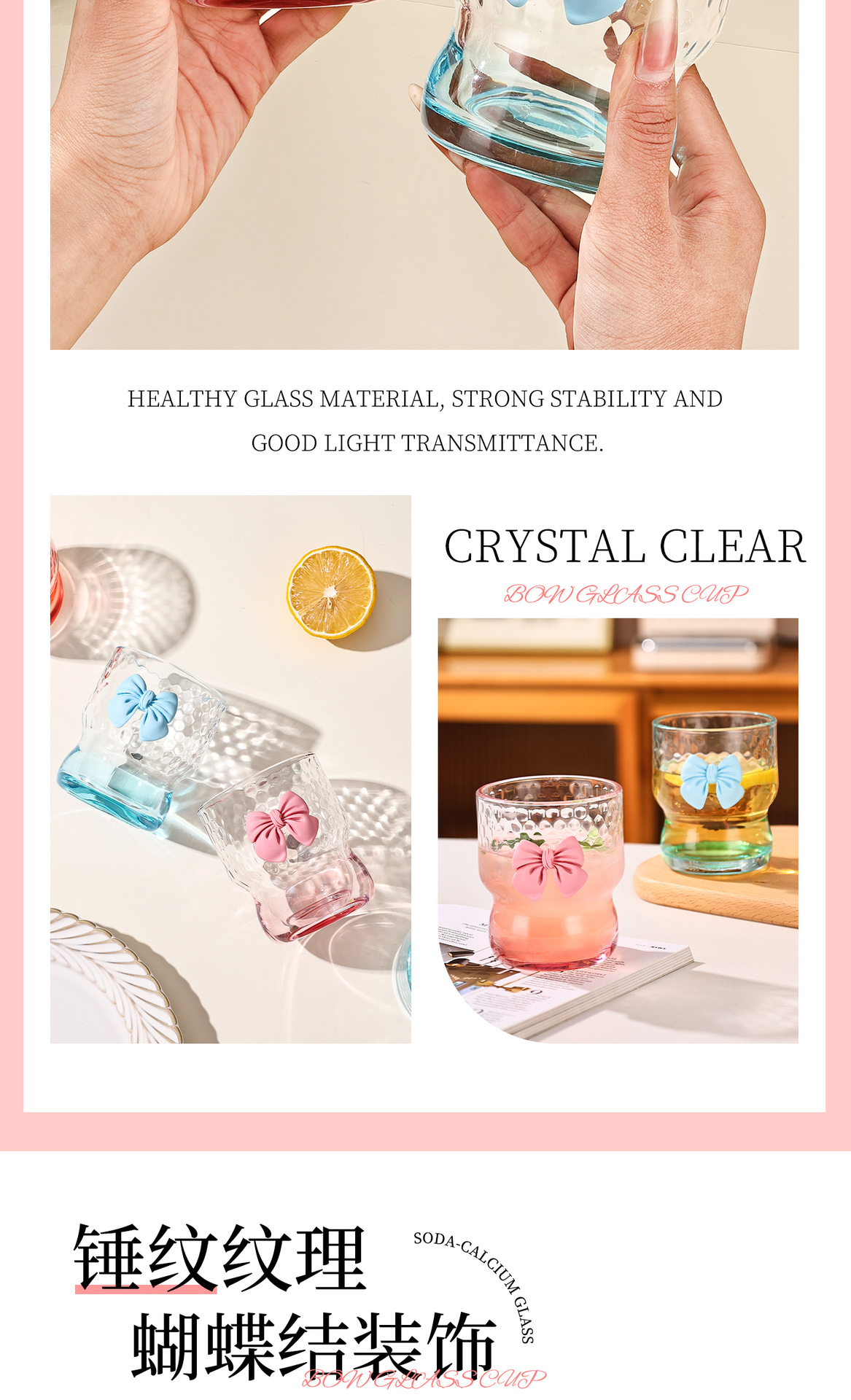 蝴蝶结锤纹水杯高颜值玻璃杯ins风创意咖啡杯喝水果茶饮料奶茶杯