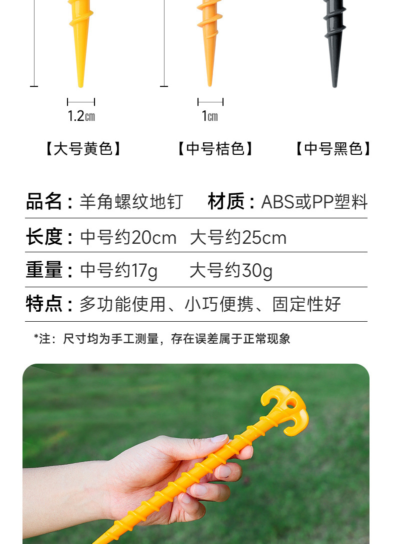 颜色 20.0cm羊角塑钉.黑,20.0cm羊角塑钉.黄,25.0cm羊角塑钉.黑,25.0cm羊角塑钉.黄,20.0cm羊角塑钉.黑+反光绳.桔,20.0cm羊角塑钉.黄+反光绳.黑,25.0cm羊角塑钉.黑+反光绳.桔,25.0cm羊角塑钉.黄+反光绳.黑,【配套】小号收纳袋,【配套】中号收纳袋,【配套】大号收纳袋,【配套】特大号收纳袋,【配套】地钉锤