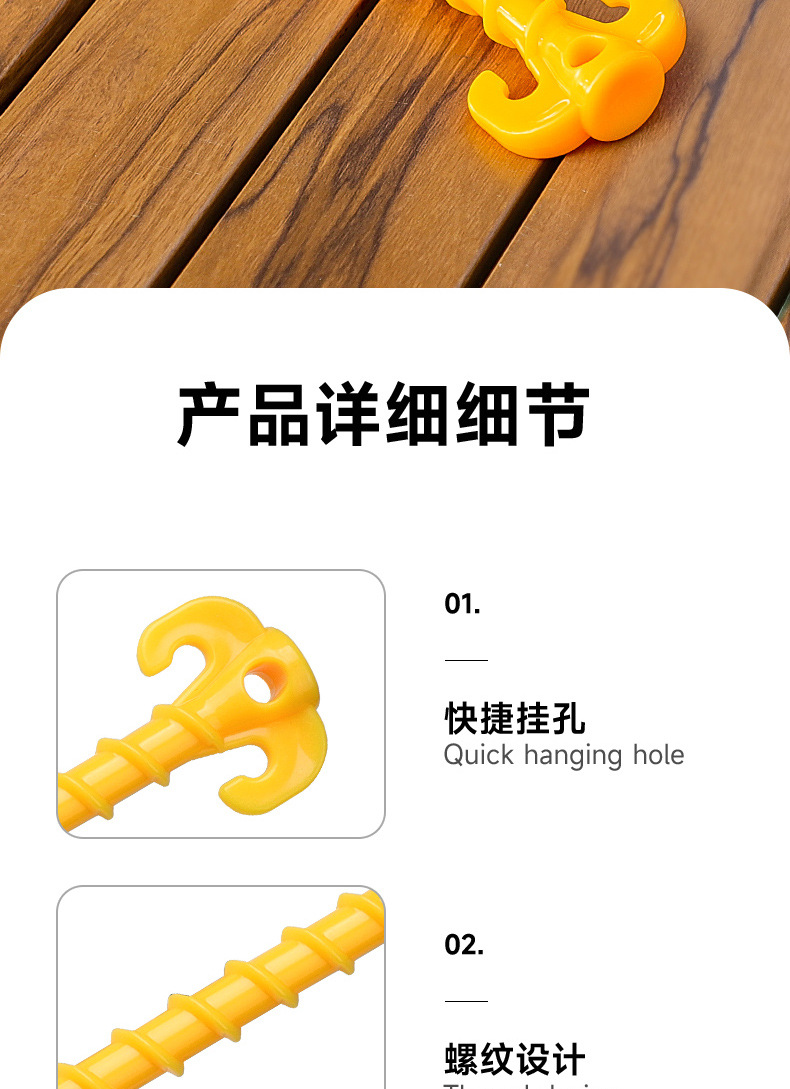 户外塑料地钉超轻加硬稳固地勾野营帐篷绳子固定打钉倒勾跨境爆品