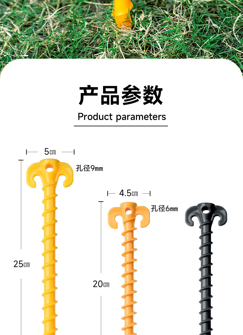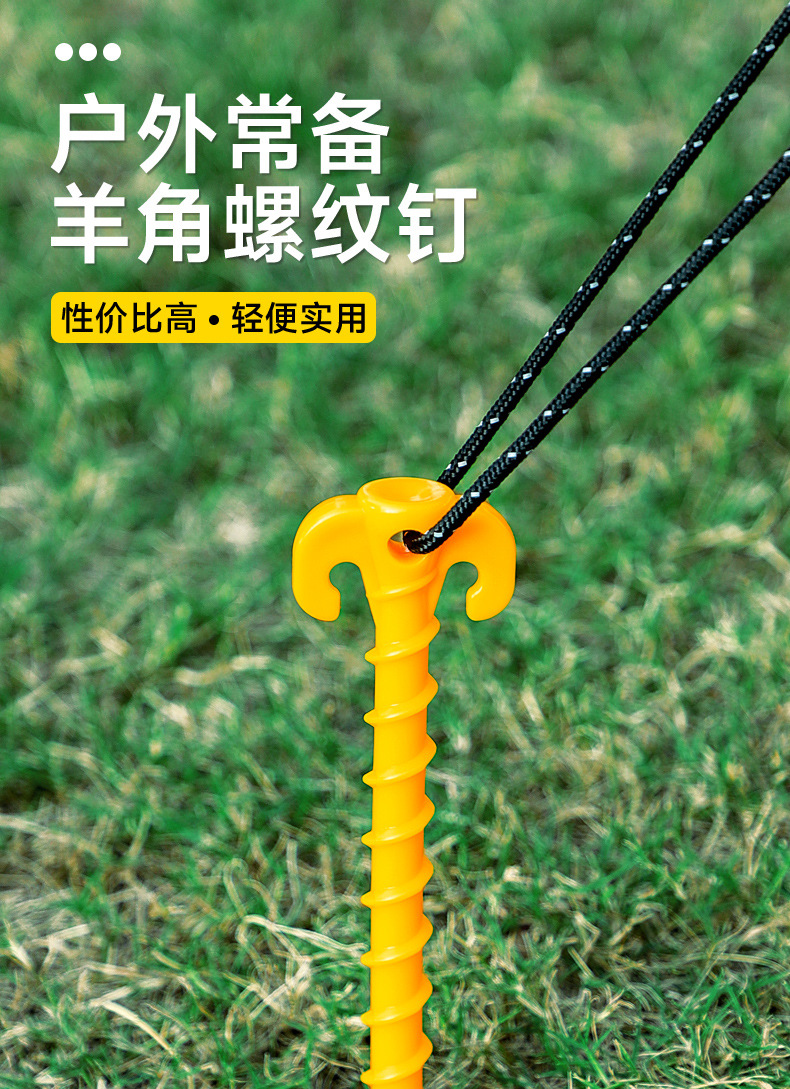 帐篷地钉螺旋式羊角塑料钉户外露营登山天幕野营帐篷地丁跨境爆品